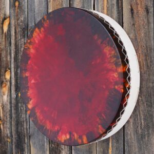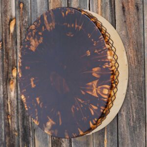 Uniikki rumpu on tasapainoinen, voimakas ja syväsointinen – L-koko tuo sille läsnä olevan, kehossa tuntuvan värähtelyn. Sen ääni on lämmin ja kantava, ja sointi jatkuu pehmeästi vielä viimeisen lyönnin jälkeen. Käsityönä valmistettu rumpu luo vahvan ja rauhoittavan äänimaiseman sekä meditatiivisiin hetkiin että seremoniallisiin tuokioihin.