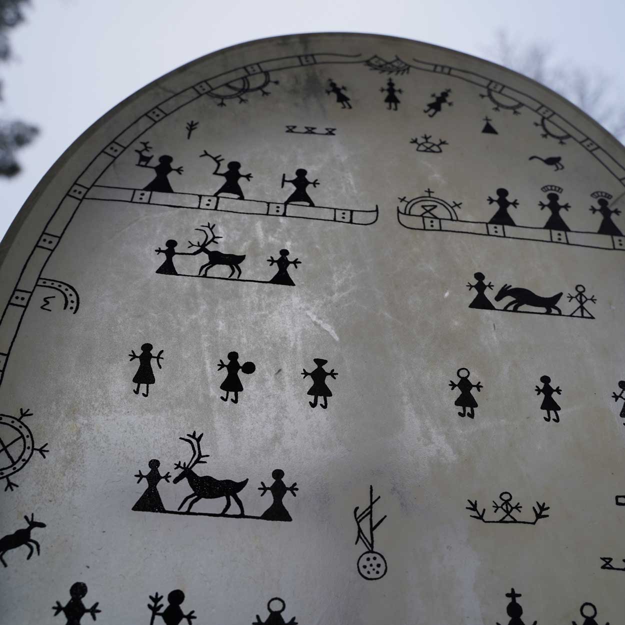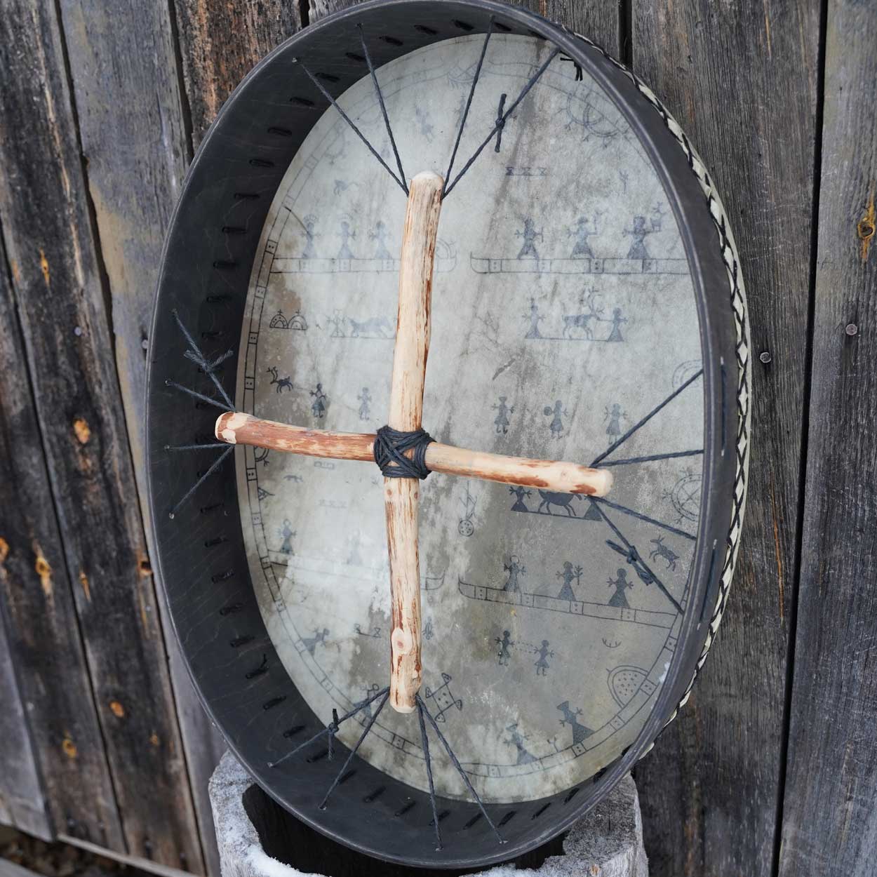 A beautiful and unique Sami drum that was handcrafted with love and care in our workshop in Finnish Lapland. This massive instrument has an amazing, low sound with powerful vibrations that you can feel in every cell.
