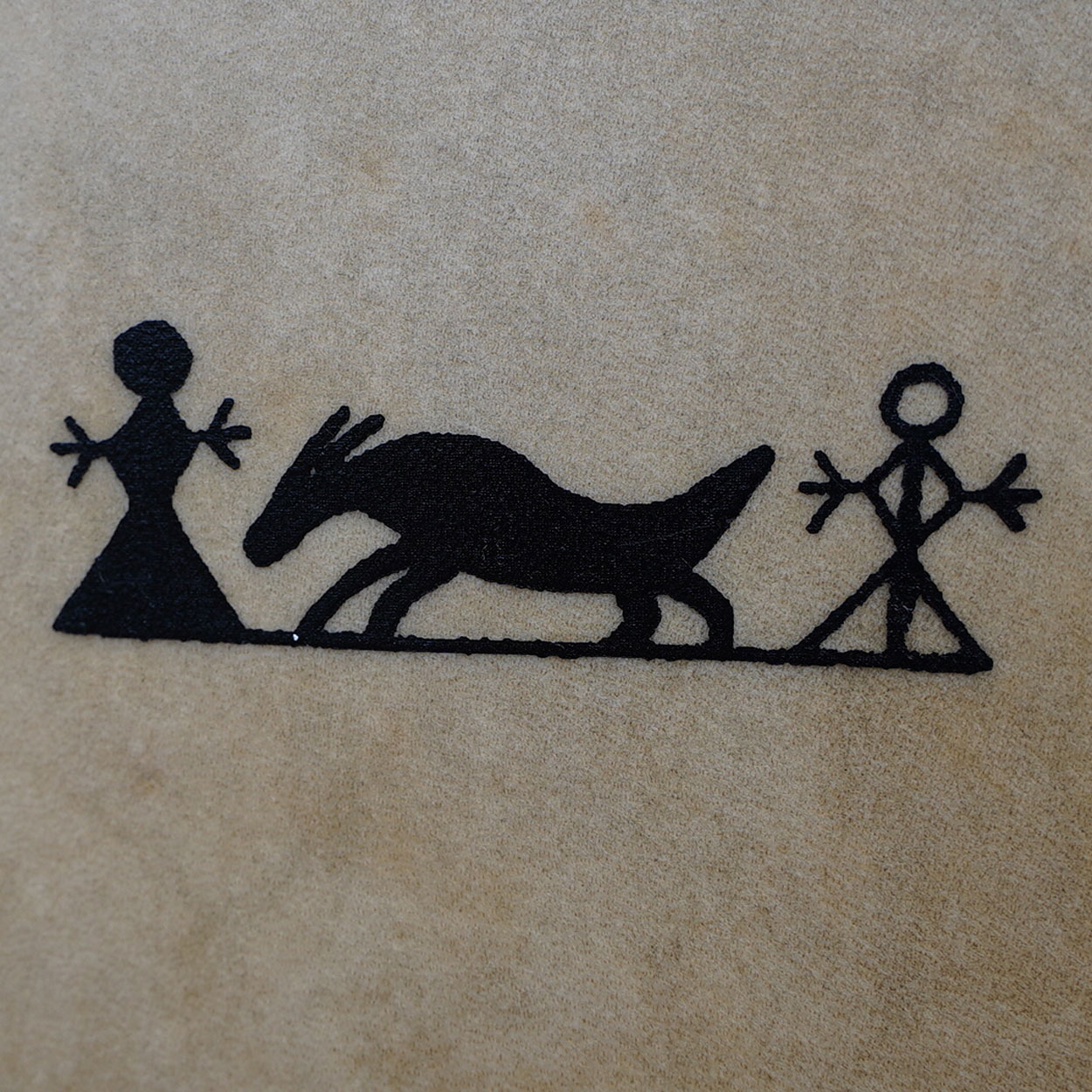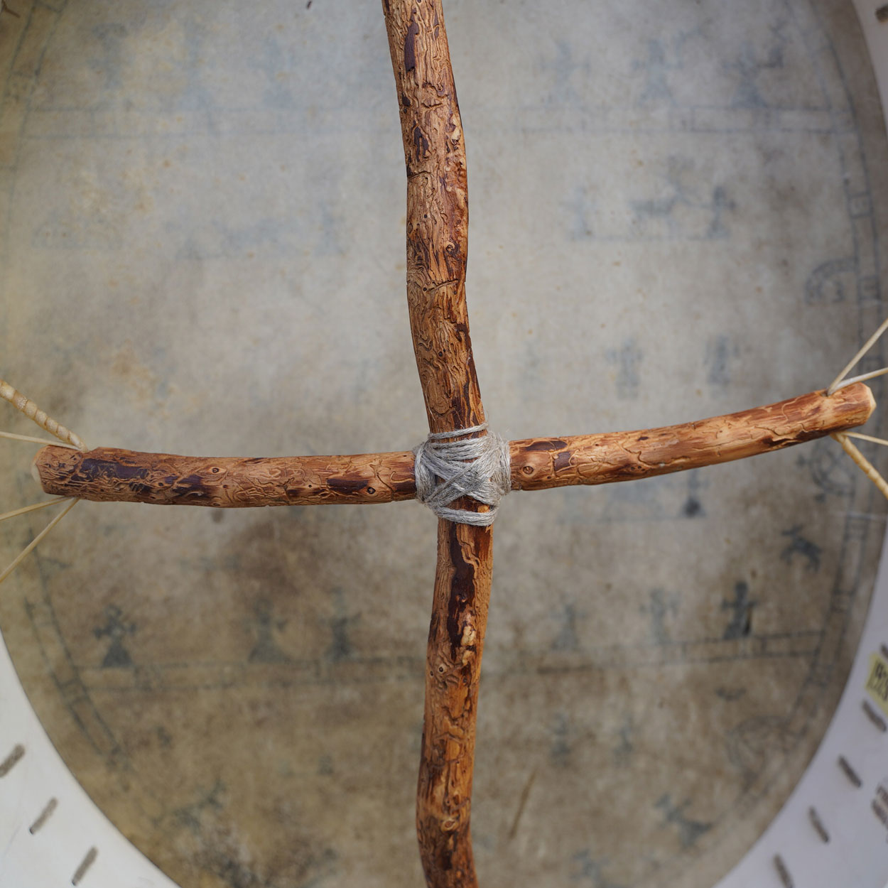 The picture on the drumhead has been hand-drawn. If you liked to add your own symbols or colour, you can use acrylic- or oil colours (please test first on a small area). You can also attach talismans on the frame or carve symbols to it. The drumhead is greased straight after we have attached it to the frame, so that it does not rip. If you have concerns regarding adding paint on the skin, please contact us to check whether the skin is suitable for painting.