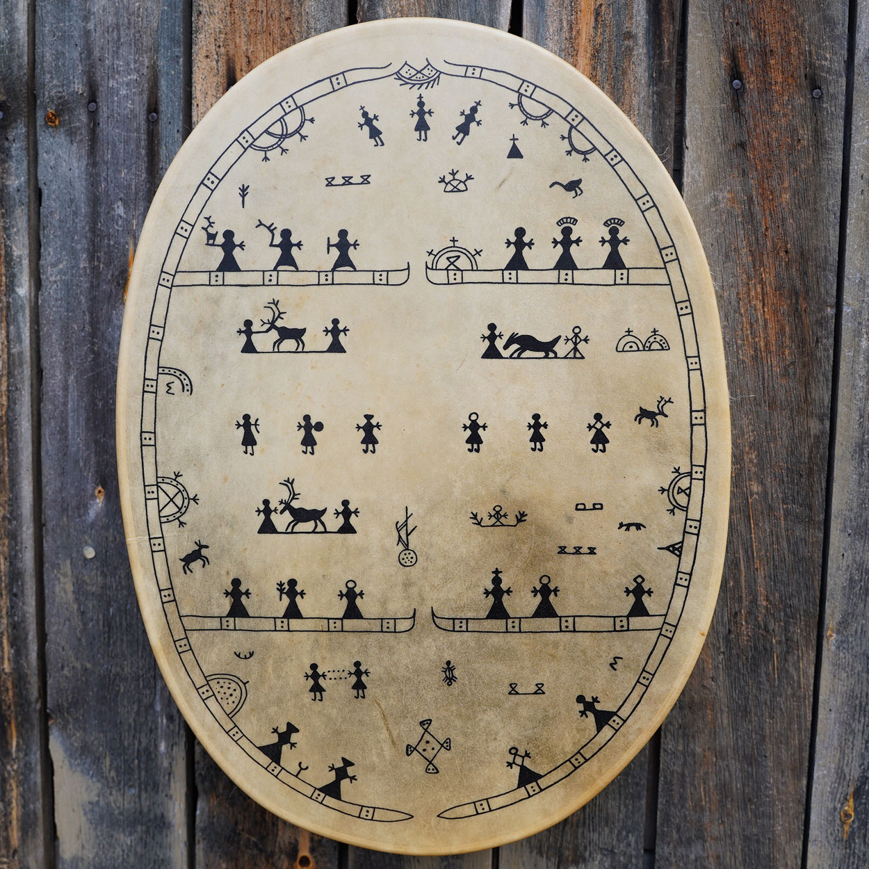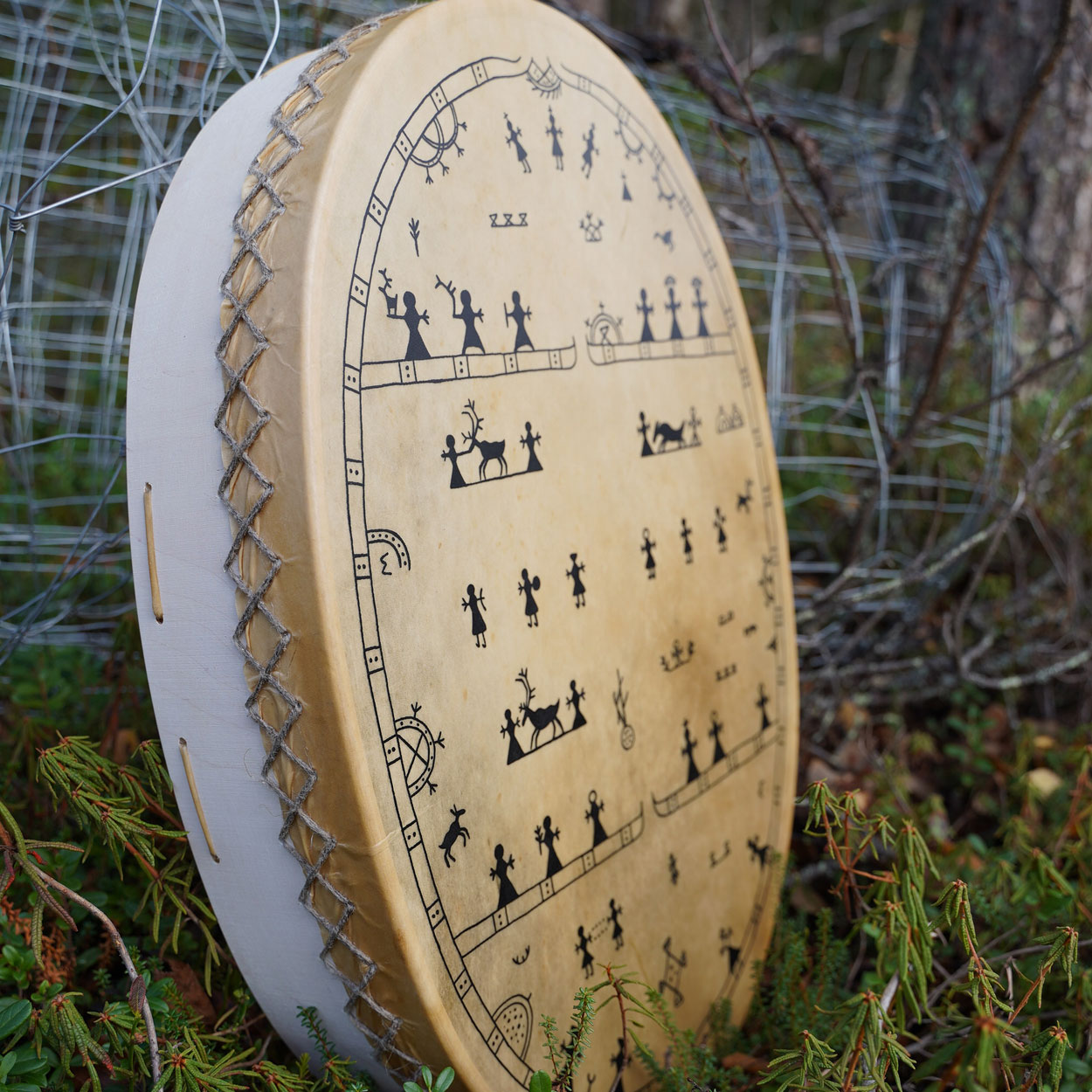 A beautiful and unique Sami drum that was handcrafted with love and care in our workshop in Finnish Lapland. This massive instrument has an amazing, low sound with powerful vibrations that you can feel in every cell.