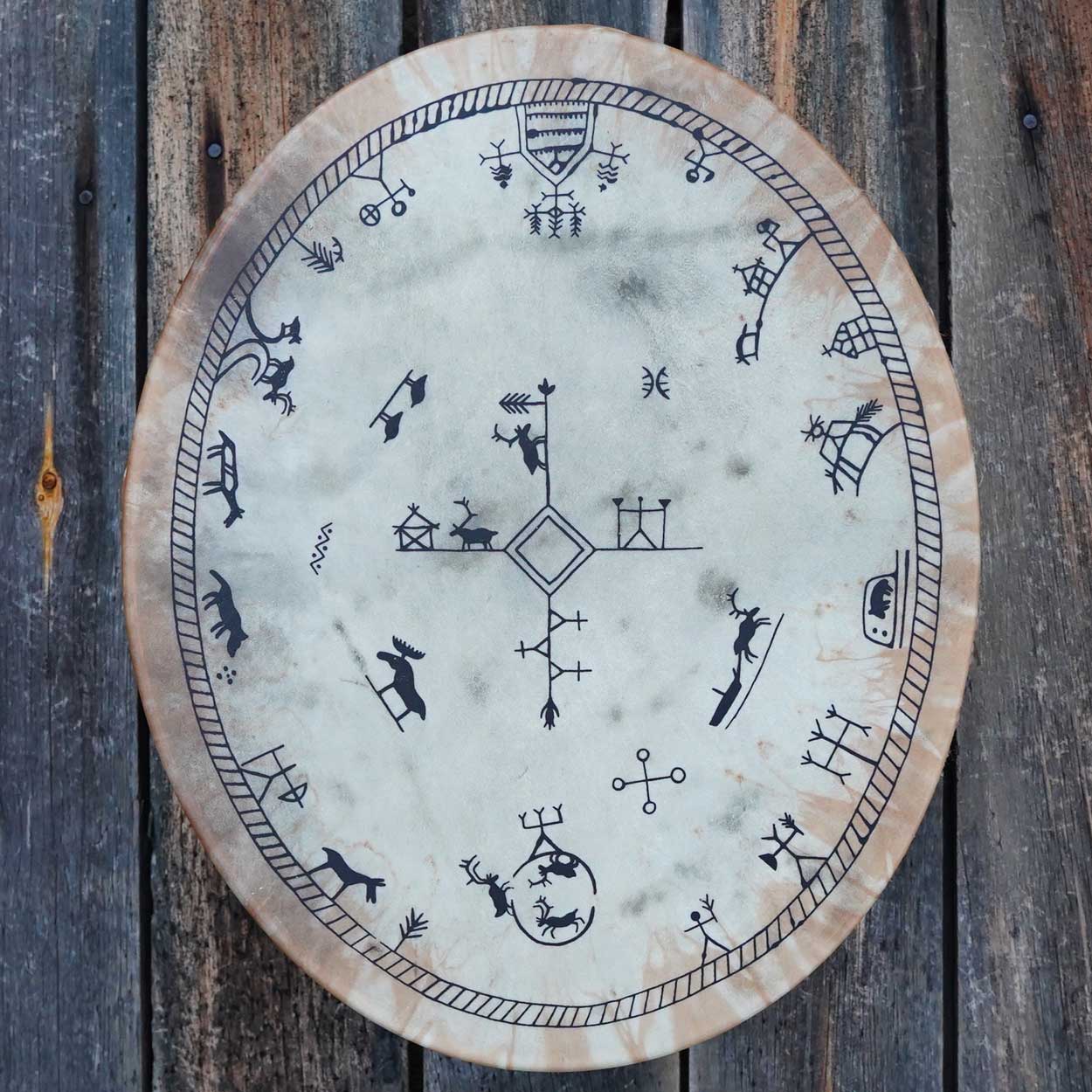 A beautiful and unique Sami drum that was handcrafted with love and care in our workshop in Finnish Lapland. This medium size drum has a low sound that takes you to a relaxing, meditative state.