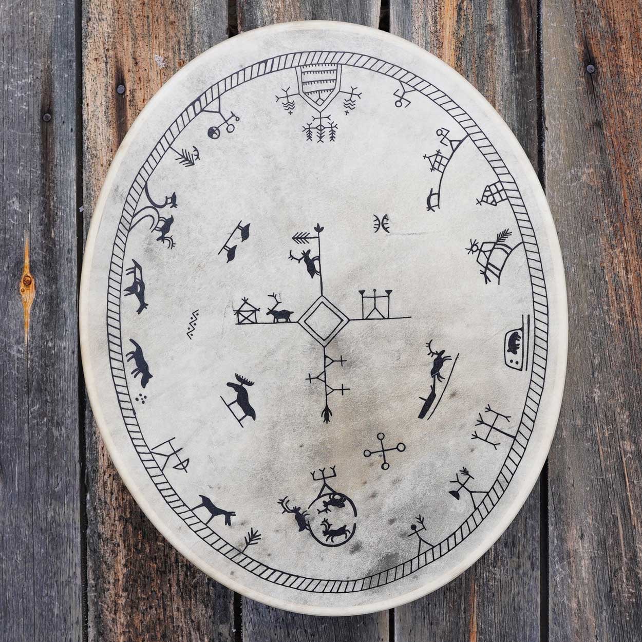 A beautiful and unique Sami drum that was handcrafted with love and care in our workshop in Finnish Lapland. This medium size drum has a low sound that takes you to a relaxing, meditative state.