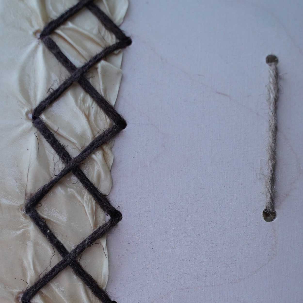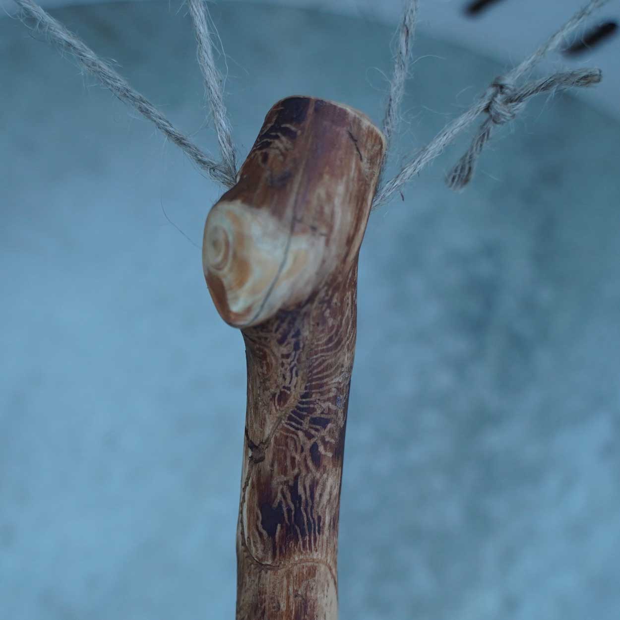 Being environmentally friendly and ethical, we source our materials locally from known and responsible suppliers. The frame is made of double-layered birch plywood which has been waxed with wood wax. The drumhead is Finnish reindeer skin that is either dyed with water colour stain or left natural. There is a wooden handle attached behind the drum.