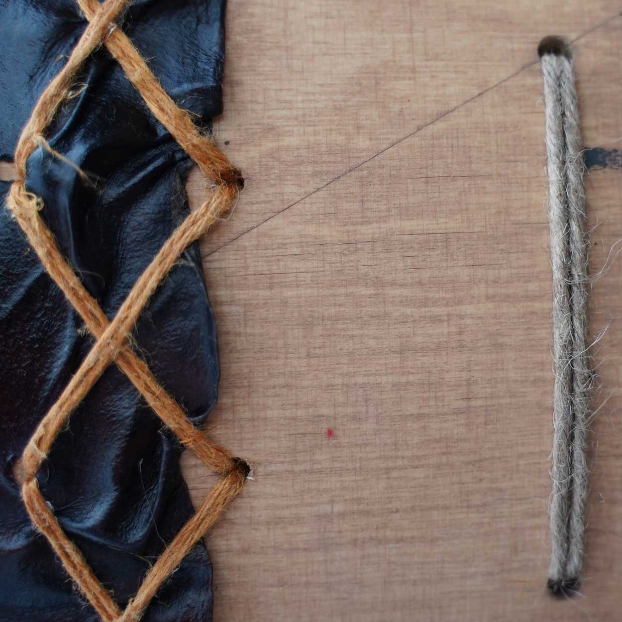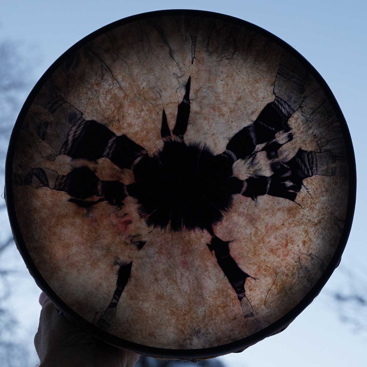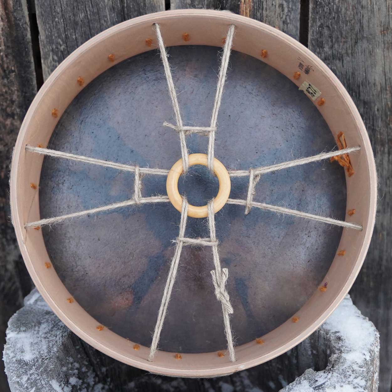Being environmentally friendly and ethical, we source our materials locally from known and responsible suppliers. The frame is made of double-layered birch plywood which has been waxed with wood wax. The drumhead is Finnish reindeer skin that is either dyed with water colour stain or left natural. There is a wooden handle attached behind the drum.