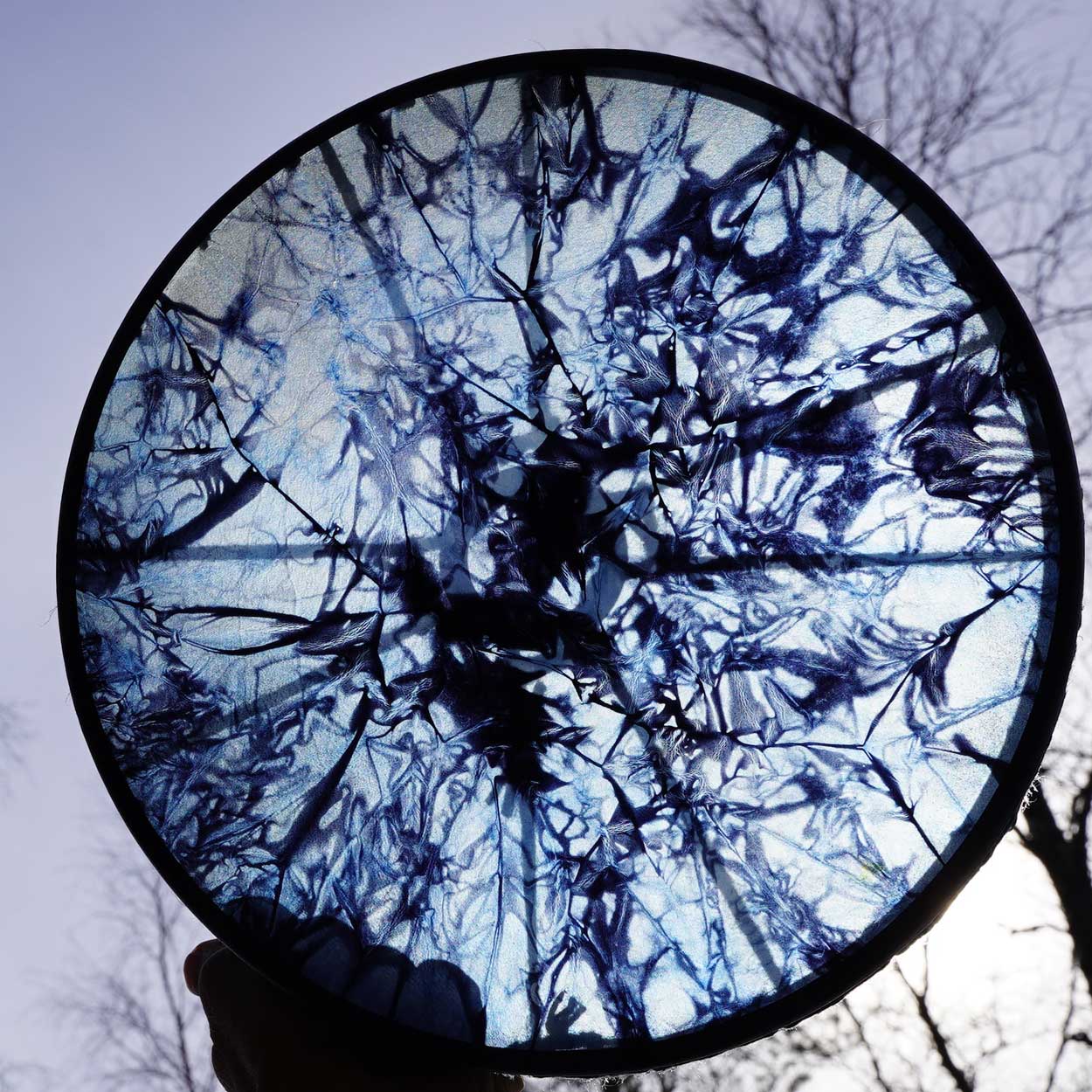 Being environmentally friendly and ethical, we source our materials locally from known and responsible suppliers. The frame is made of double-layered birch plywood which has been waxed with wood wax. The drumhead is Finnish reindeer skin that is either dyed with water colour stain or left natural. There is a wooden handle attached behind the drum.