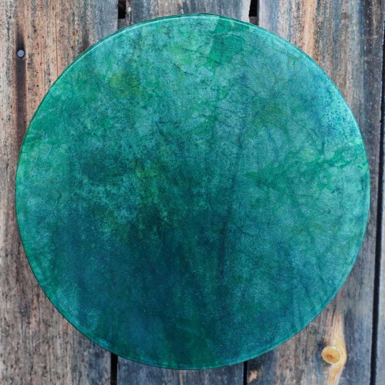 If you liked to add your own symbols or colour, you can use acrylic- or oil colours (please test first on a small area). Our drums are greased once the drumhead is attached, so that it does not rip, therefore it would be good to avoid painting straightaway after you have received the drum. Please contact us if you have any concerns regarding painting the drum.