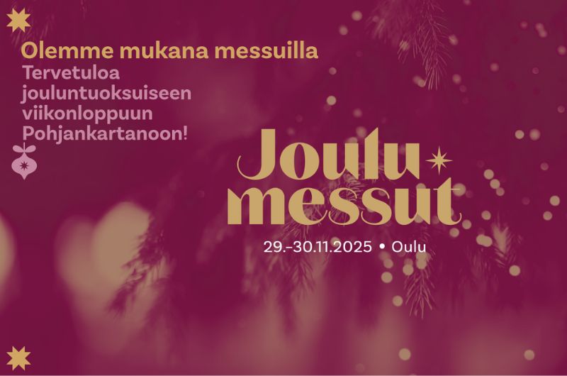 Pohjankartanon koulu Leevi Madetojan katu 1, Oulu, FinlandJoulun tuoksua ja taikaa on luvassa Pohjankartanossa, kun odotettu Joulumessut palaa jälleen virittämään Oulun juhlatunnelmiin. Tapahtumassa on luvassa ainutlaatuisia, rakkaudella