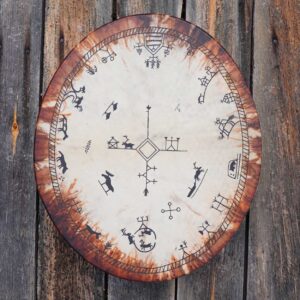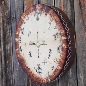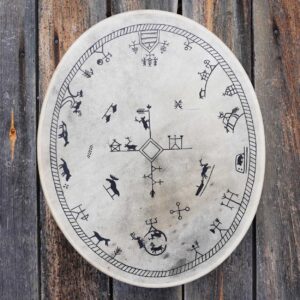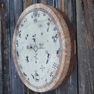 Rummun mukana seuraavat hoito-ohjeet. Vihkimisohjeet voit ladata tästä. Koko: pyöreä lapinrumpu 31×31 cm, reunan korkeus 10 cm. Paino noin 0,450 kg. Huom! Lapinrumpu sopii soittamiseen, mutta symbolit kuluvat, jos kuviointia hinkkaa, raaputtaa tai se joutuu hankaukseen.