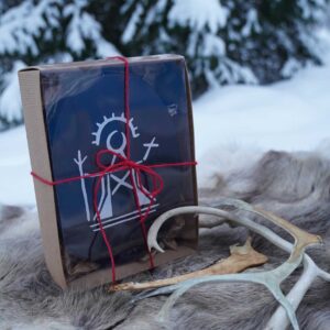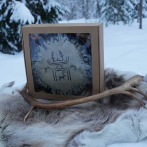 Rummun mukana seuraavat hoito-ohjeet. Vihkimisohjeet voit ladata tästä. Koko: pyöreä lapinrumpu 31×31 cm, reunan korkeus 10 cm. Paino noin 0,450 kg. Huom! Lapinrumpu sopii soittamiseen, mutta symbolit kuluvat, jos kuviointia hinkkaa, raaputtaa tai se joutuu hankaukseen.Lapinrumpu UkkosenJumala Tiermes 2064 – lahjapaketissa