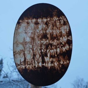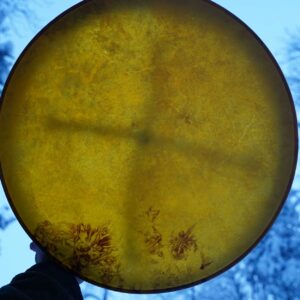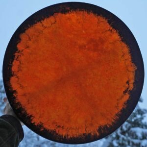 Rummun mukana seuraavat printatut hoito-ohjeet. Vihkimisohjeet voit ladata tästä. Läpimitta (noin) 51 cm, reunan korkeus 12 cm, paino noin 1 kg.Shamaanirumpu Keväthangilla 2467