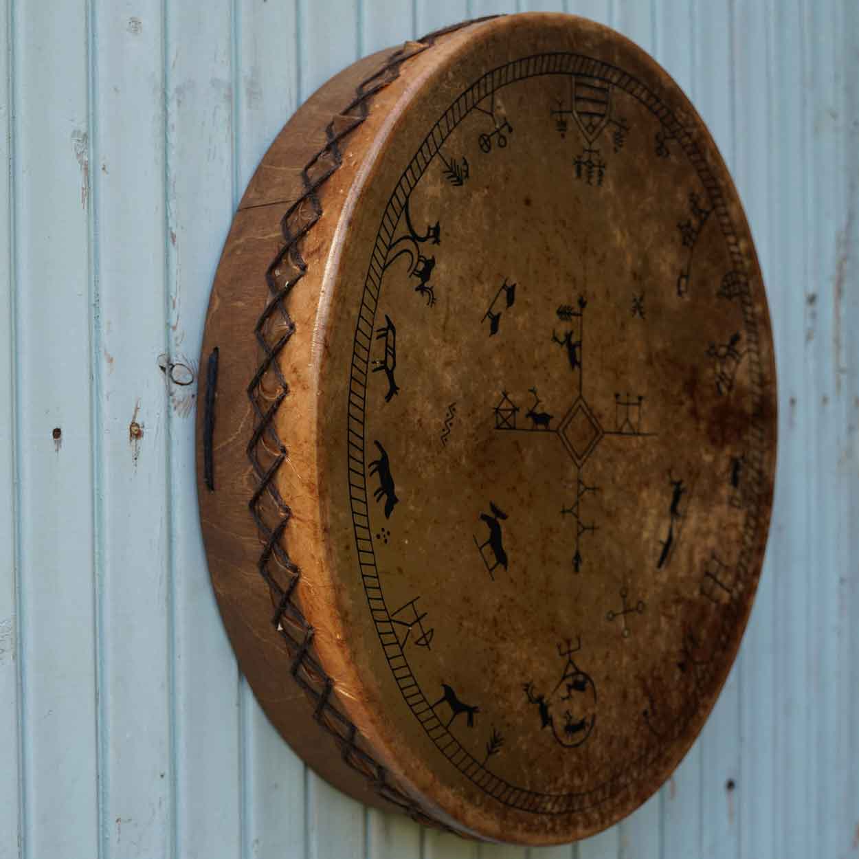 Rummun mukana seuraavat hoito-ohjeet. Vihkimisohjeet voit ladata tästä. Koko: pyöreä lapinrumpu 31×31 cm, reunan korkeus 10 cm. Paino noin 0,450 kg. Huom! Lapinrumpu sopii soittamiseen, mutta symbolit kuluvat, jos kuviointia hinkkaa, raaputtaa tai se joutuu hankaukseen.