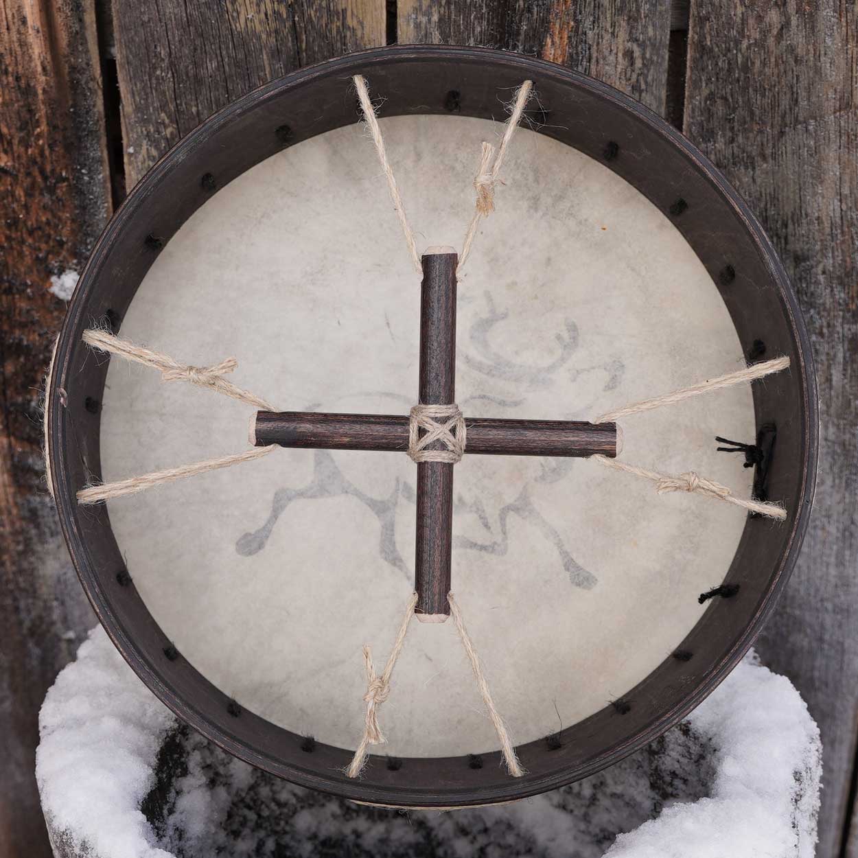 Rummun mukana seuraavat printatut hoito-ohjeet. Vihkimisohjeet voit ladata tästä.Koko: pyöreä lapinrumpu 31×31 cm, reunan korkeus 10 cm. Paino noin 0,450 kg.
