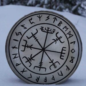 Luonto ja sen kunnioittaminen ovat meille tärkeitä. Siksi rummun materiaalit hankitaan pääosin paikallisilta, vastuullisilta tuottajilta. Runko on taivutettu kaksinkertaisesta koivuvanerista ja viimeistelty luonnollisella puuvahalla. Shamaanirummun kalvo on kotimaista poronnahkaa – joko luonnonsävyinen tai kauniisti vesipetsillä värjätty. Takana on pyöreä käsikahva, joka on kiinnitetty nyörein.