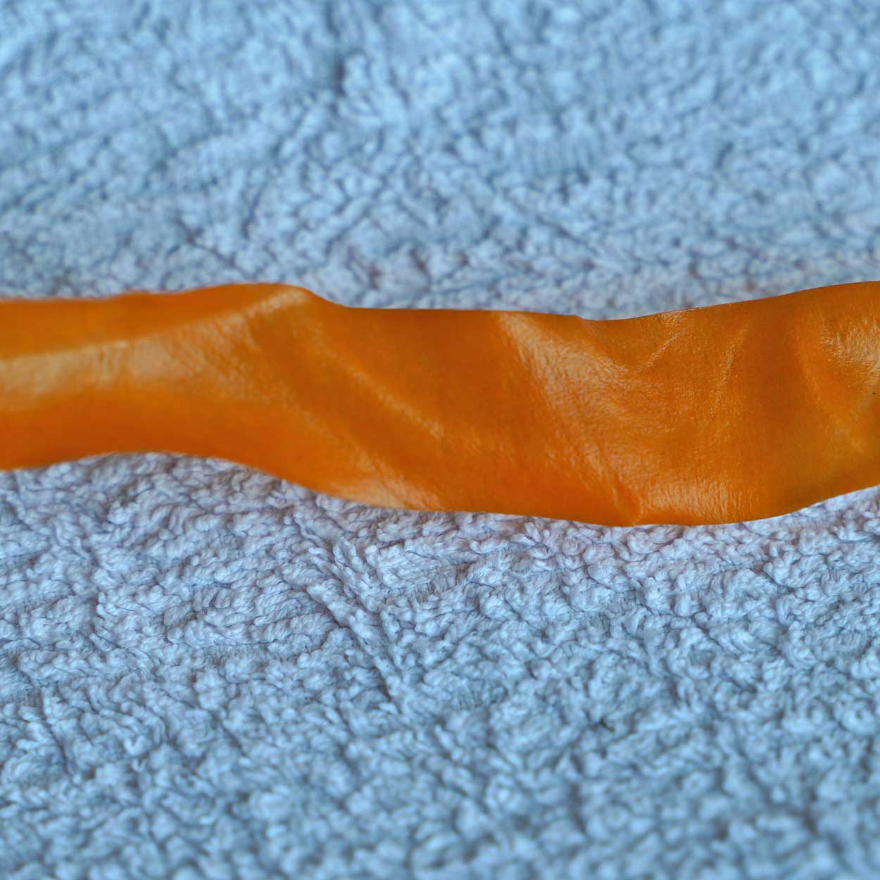 Kääri värjätty nahka hetkeksi aikaa esim. talouspaperiin, jotta väri ei sotke ja nahka saa hetken levähtää.