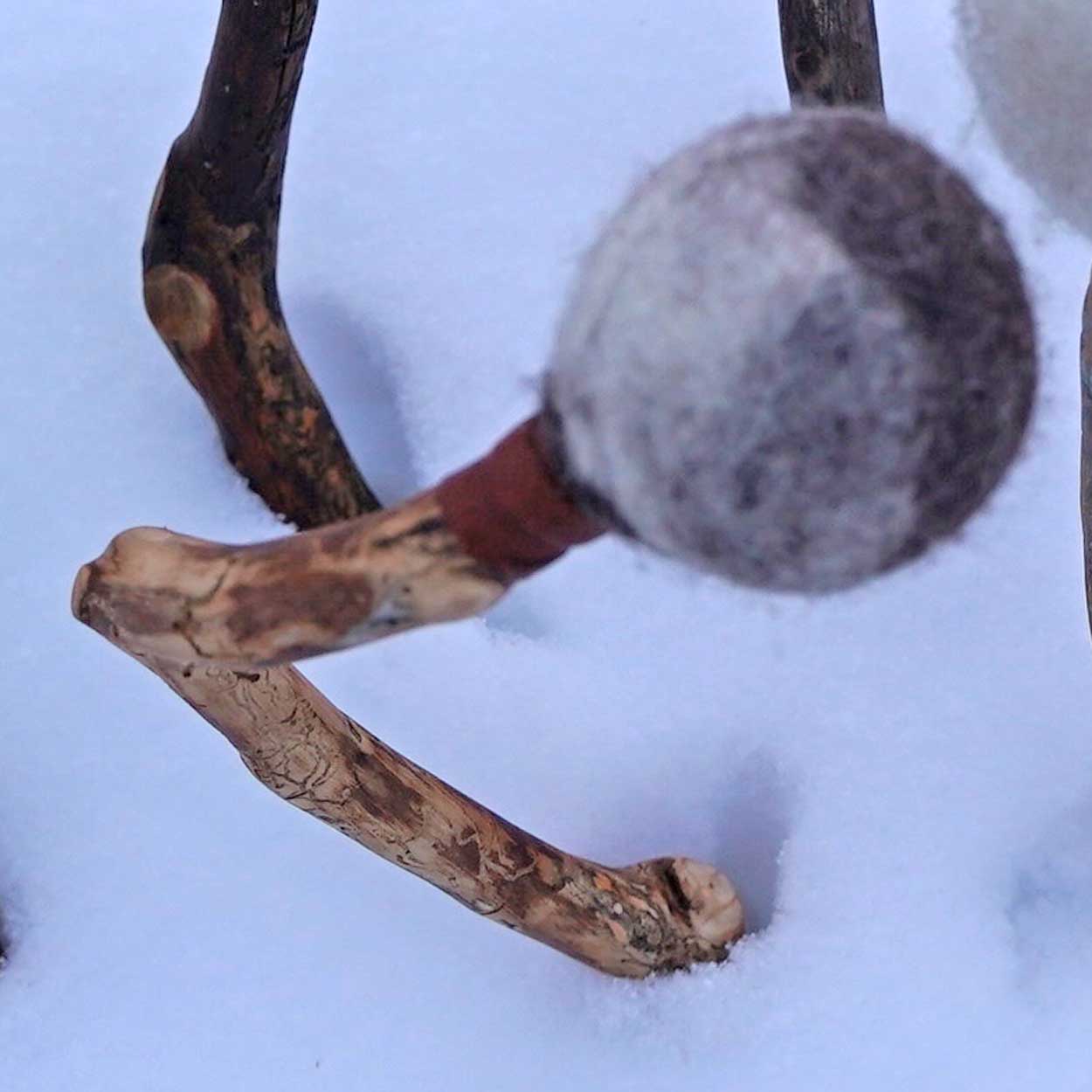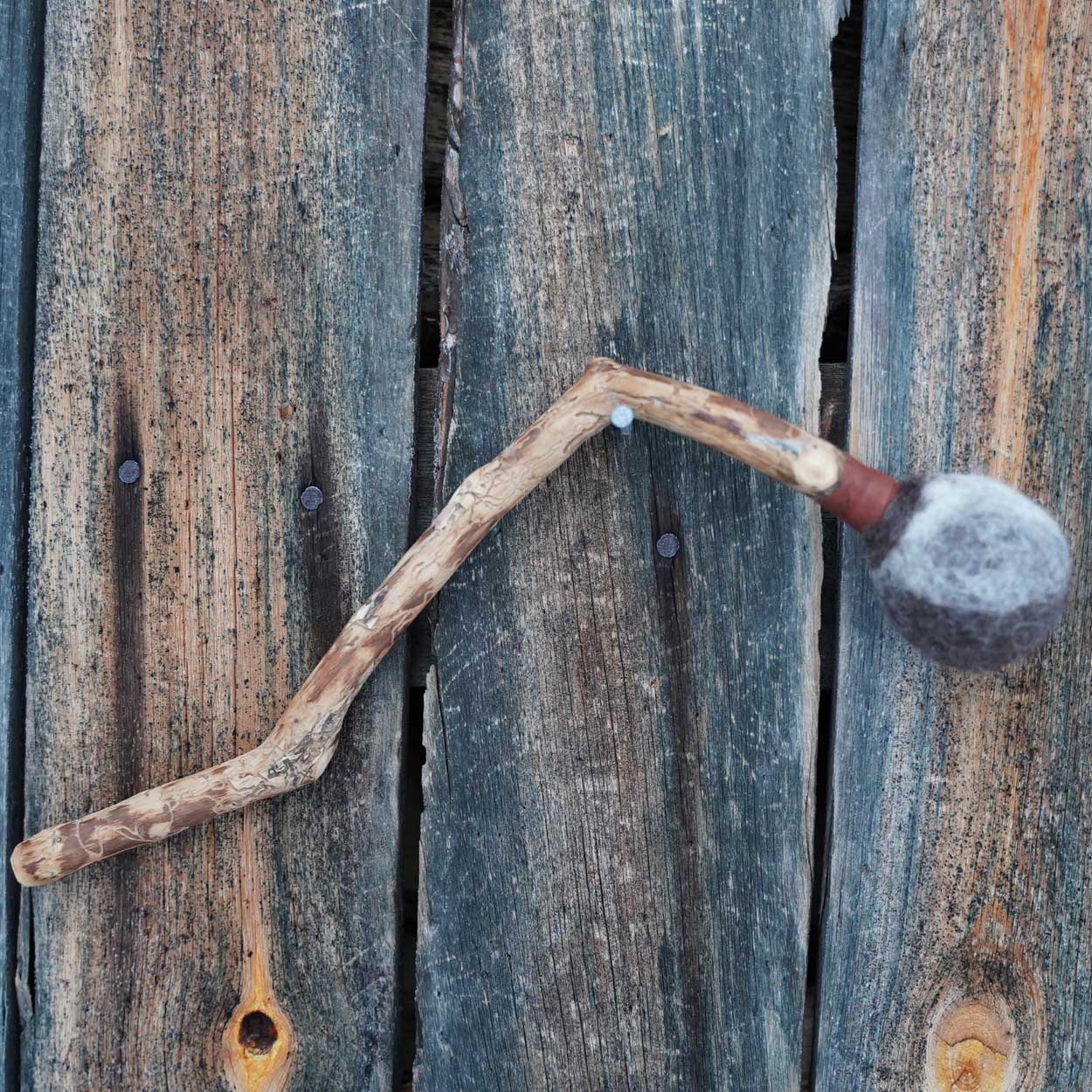 Puu on yleensä kuusta, mutta noukimme maasta kaikki ”käteen sopivat” ja luonto äidin muovaamat kauniit kepit. Osassa rumpukapuloita on hienoja ötököiden syömiä koloja, jotka ovat jo itsessään taideteos 🙂