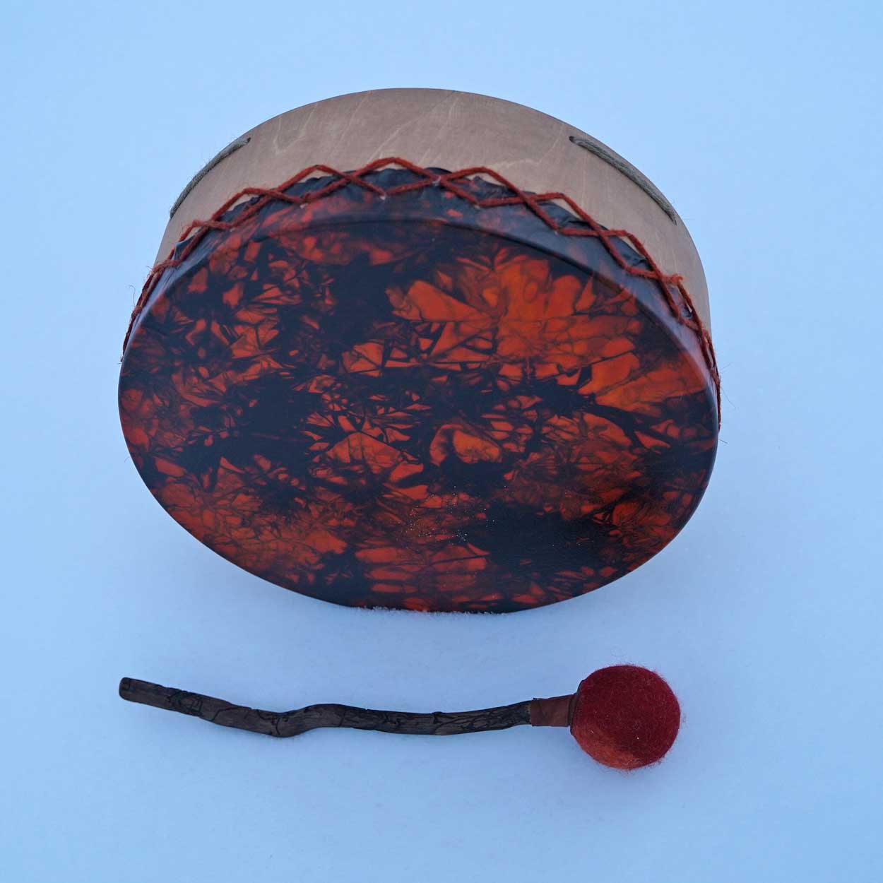 Metsäkajo soi pehmeästi ja syvältä, ja se sopii hoitoihin, rituaaleihin tai vaikka meditointiin. M-kokoinen rumpu sopii sekä aloittelijalle että kokeneelle rumpalille, ja sen värimaailma tekee siitä myös näyttävän sisustuselementin.