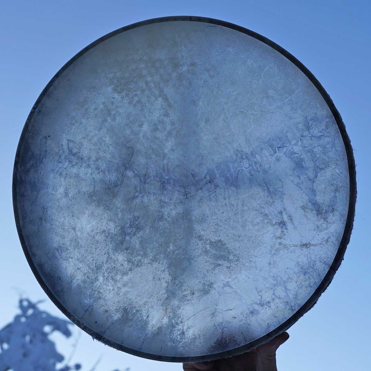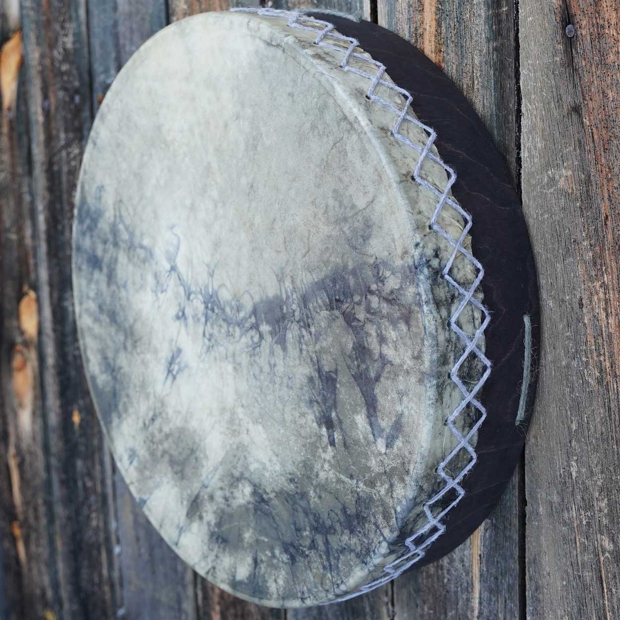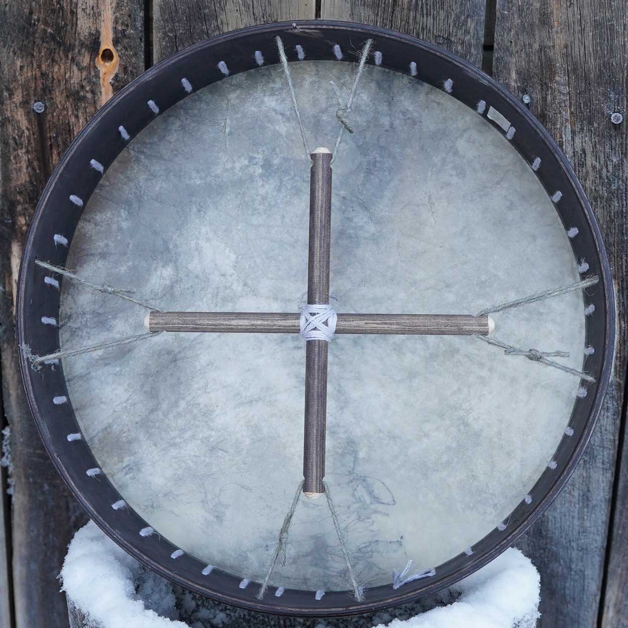 Näyttävä, keskikokoinen shamaanirumpu on valmistettu huolella käsityönä työpajasamme Lapissa. M-kokoinen rumpu sopii niin aloittelijan kuin kokeneemmankin rumpalin käteen. Rummun tumma ja kantava ääni tuntuu vatsanpohjassa asti, johdatellen kuulijat elävöittävään ja rentoutuneeseen tilaan.