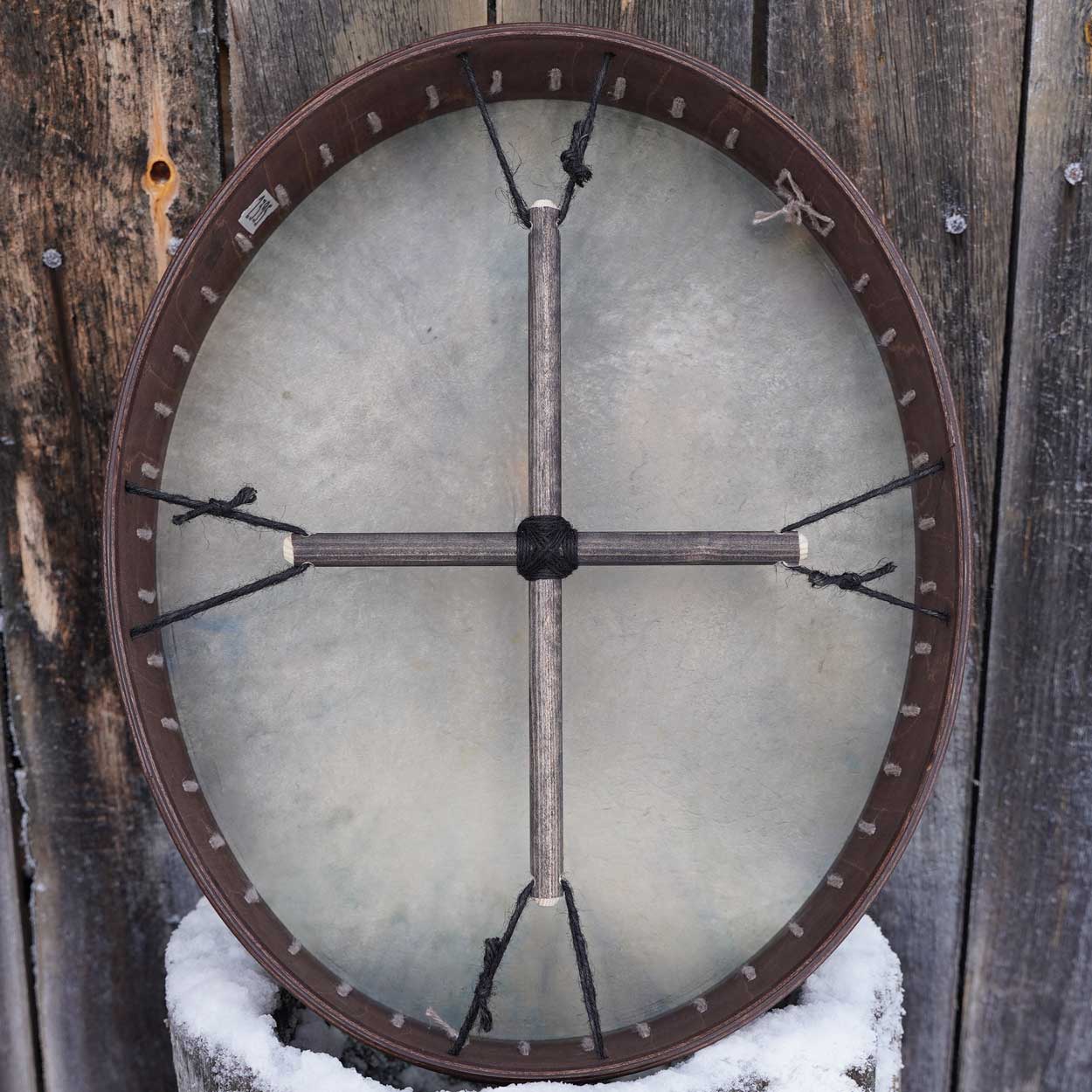 Luonto ja siitä huolenpitäminen on meille hyvin tärkeää, minkä vuoksi hankimme rummun materiaalit pääosin paikallisilta, vastuullisilta tuottajilta. Runko on taivutettu kaksinkertaisesta koivuvanerista, joka on vahattu puuvahalla. Shamaanirummun kalvo on kotimaista poronnahkaa, joka on natural tai värjätty upeisiin väreihin vesipetsillä. Rummun käsikahvana toimii puinen nyörein sidottu ristikko, josta saa hyvän soitto-otteen.