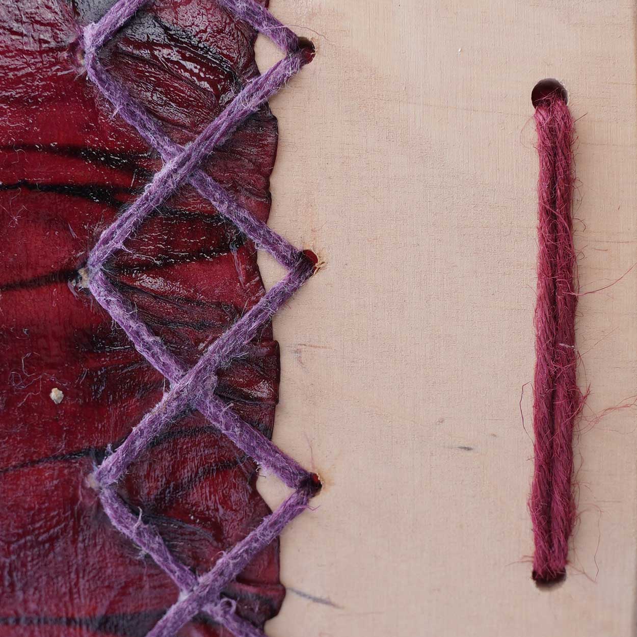 Rumpumme rasvataan heti valmistumisen jälkeen, jotta ne eivät repeäisi. Jos sinun on tarkoitus tehdä isoja kuvia tms. rummun pintaan, suosittelemme että otat etukäteen yhteyttä ja varmistat rumpunahan sopivuuden maalaukseen (rasva haihtuu hiljalleen pois, joten vaikka rumpu on rasvattu, voi nahkaan kokeilla maalausta jonkin ajan kuluttua).