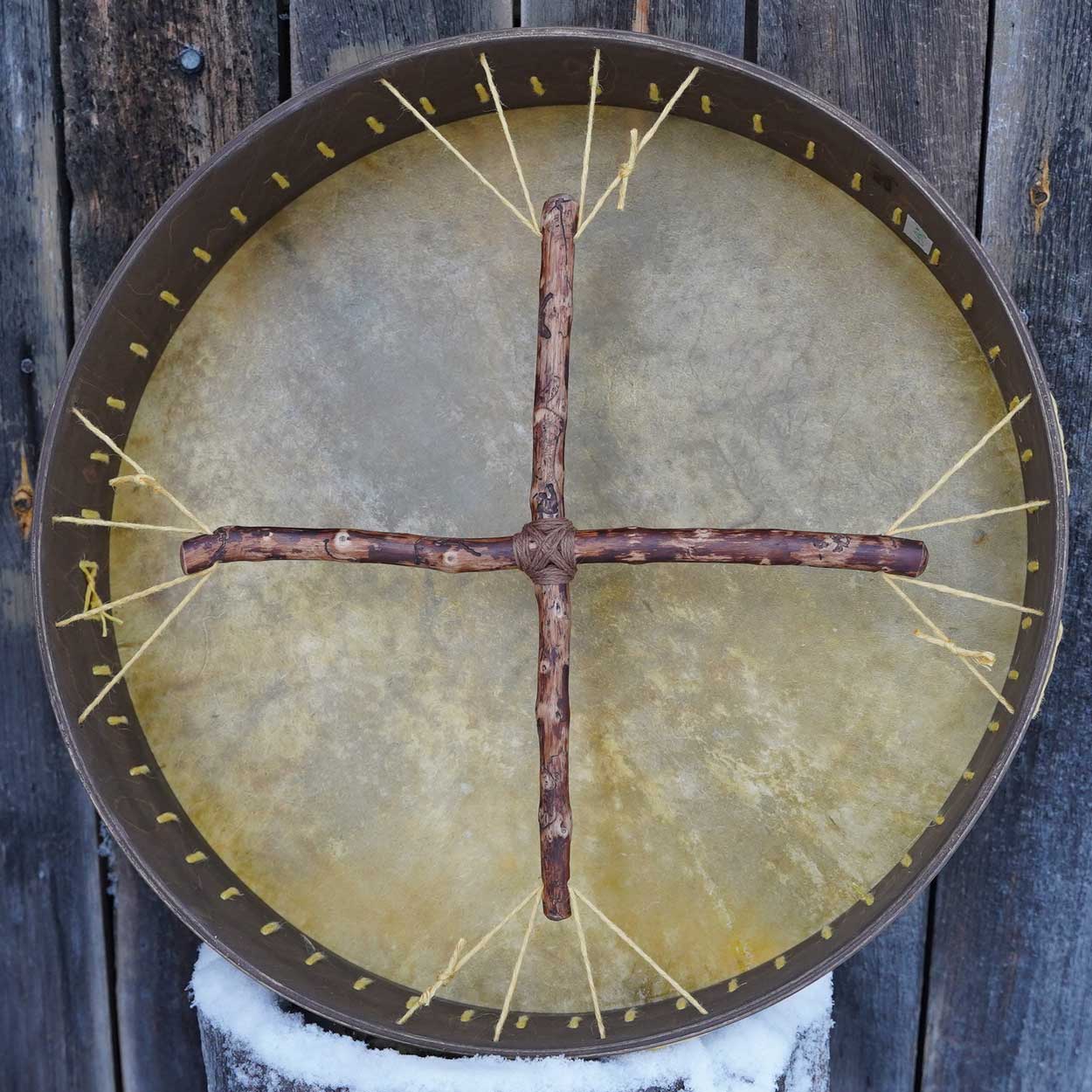 Uniikki rumpu on tasapainoinen, voimakas ja syväsointinen – L-koko tuo sille läsnä olevan, kehossa tuntuvan värähtelyn. Sen ääni on lämmin ja kantava, ja sointi jatkuu pehmeästi vielä viimeisen lyönnin jälkeen. Käsityönä valmistettu rumpu luo vahvan ja rauhoittavan äänimaiseman sekä meditatiivisiin hetkiin että seremoniallisiin tuokioihin.