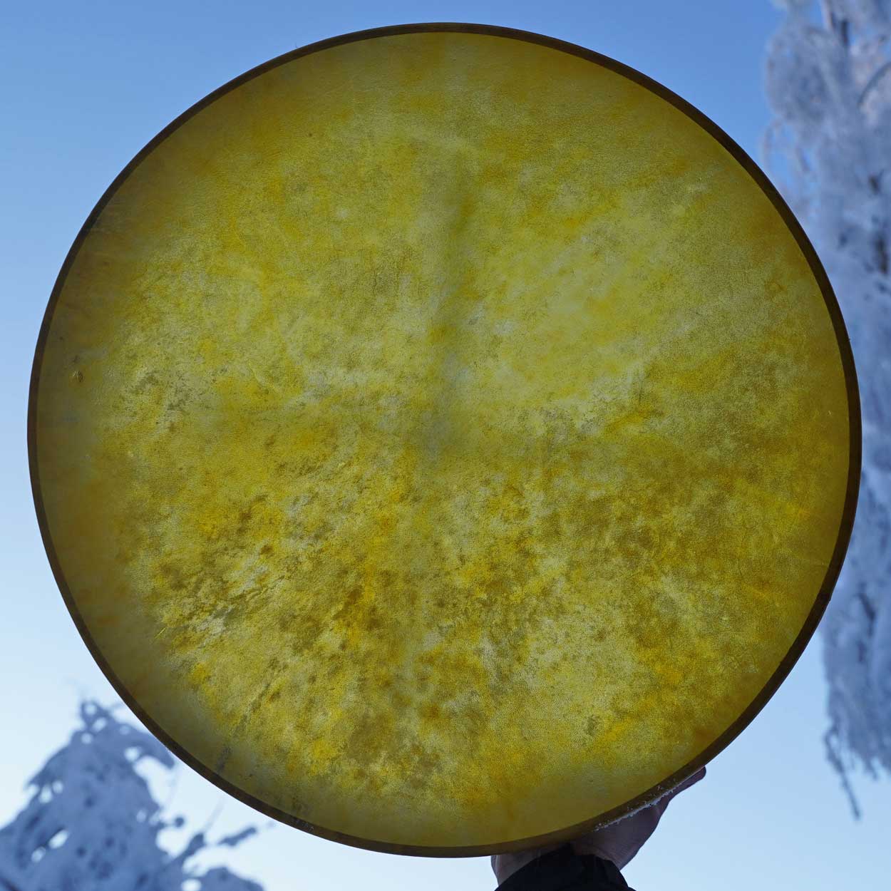 – Ulkoilmassa soittaminen onnistuu hetken aikaa ilman lämmönlähdettä. Riippuen vuodenajasta ja ilmankosteudesta (loppukesä ja syksy ovat kaikista haastavinta aikaa, koska kosteutta on paljon) tarvitset lämmönlähteen rummullesi, esim. aurinko tai nuotio, jotta rumpu jaksaa pitää vireyden.