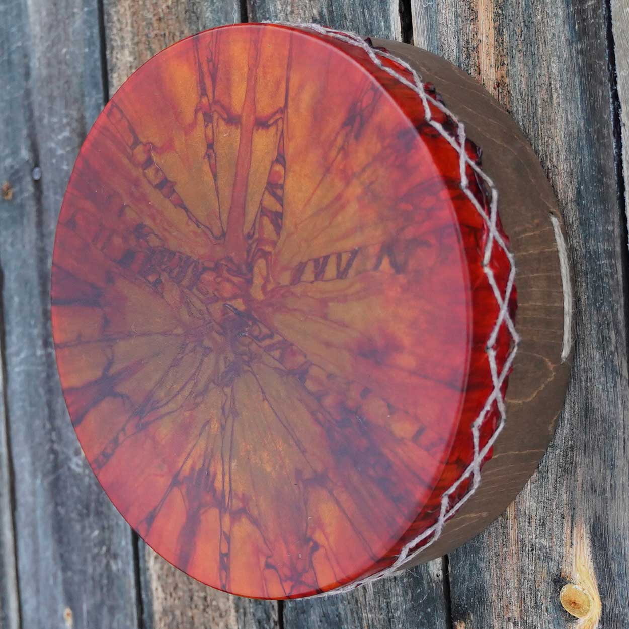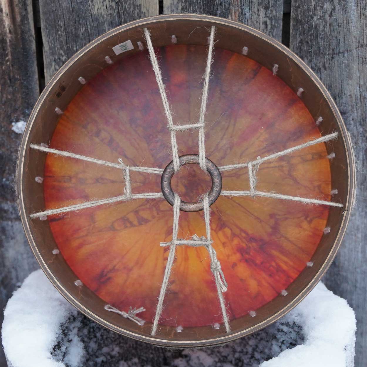 Kaunis ja herkkäsointinen rumpu on valmistettu huolella käsityönä Lapin työpajassamme. S-kokoinen rumpu on erinomainen ensirumpu – kevyt kuljettaa, sopii matkakumppaniksi ja istuu mukavasti myös lasten käsiin. Sen ääni on matala ja värähtelevä, mutta pehmeä ja hillitty – soittohetket sujuvat rauhassa vaikka kerrostalossakin.