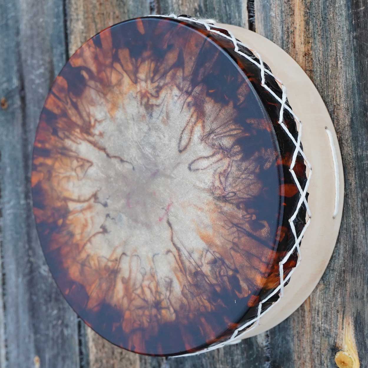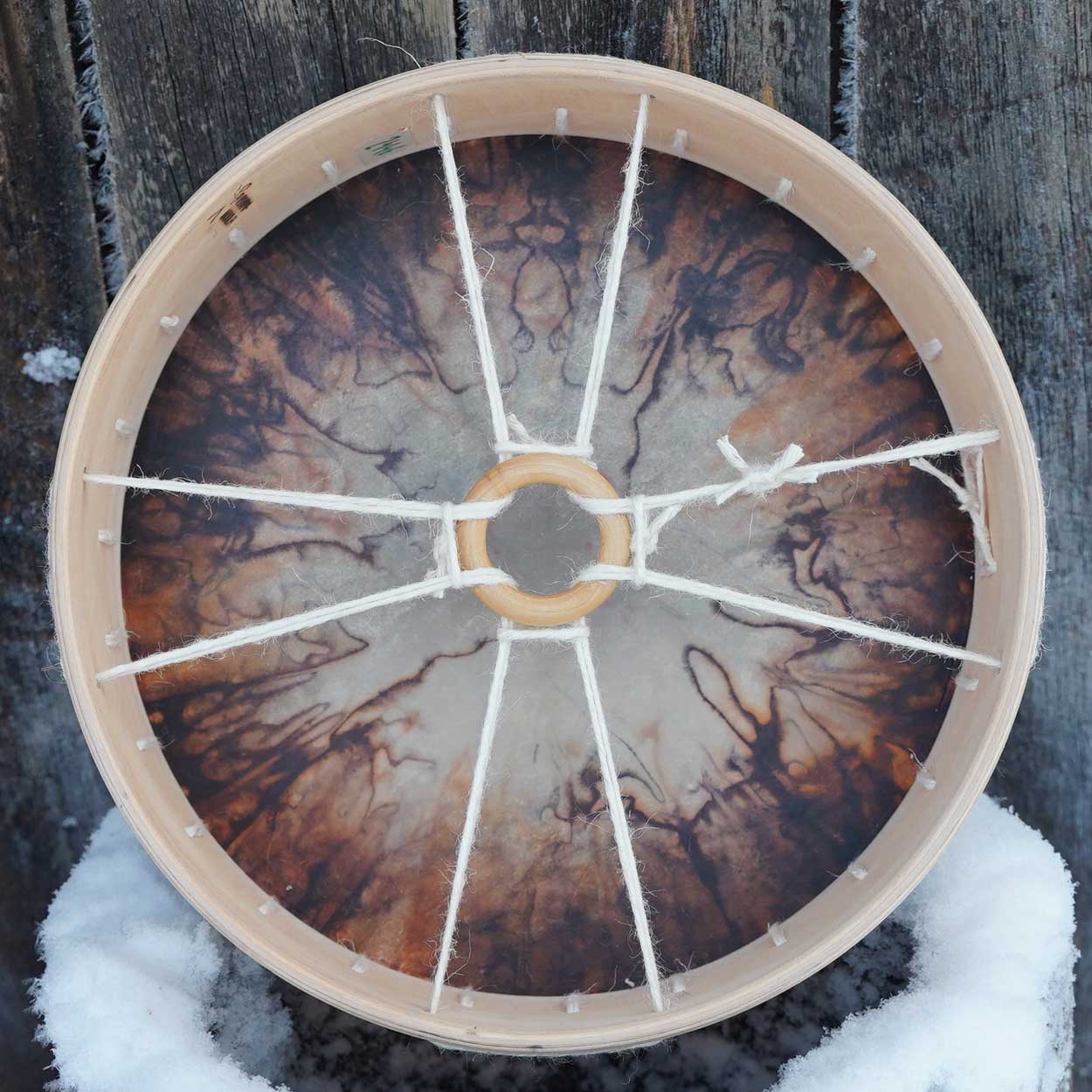 Kaunis, pieni shamaanirumpu on valmistettu huolella käsityönä Lapin työpajassamme. S-kokoinen rumpu on hyvä ensirumpu, joka painonsa vuoksi soveltuu hyvin myös matkakumppaniksi tai lasten käsiin. Ääni on kuitenkin matala ja värähtelevä, mutta vähän hiljaisempi kuin isoimmissa rummuissa, joten sitä voi rauhassa soitella myös kerrostaloympäristössa.