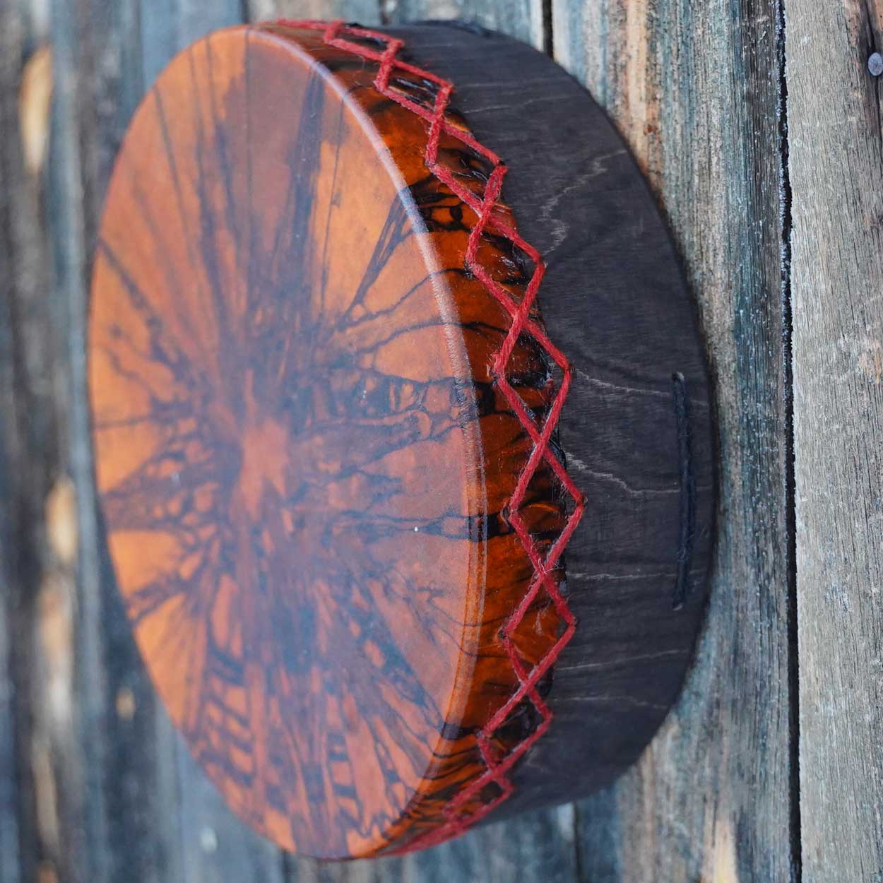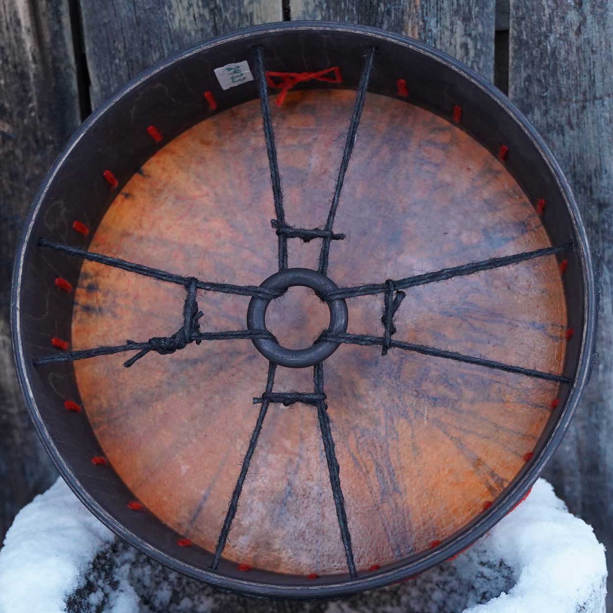 Kaunis ja herkkäsointinen rumpu on valmistettu huolella käsityönä Lapin työpajassamme. S-kokoinen rumpu on erinomainen ensirumpu – kevyt kuljettaa, sopii matkakumppaniksi ja istuu mukavasti myös lasten käsiin. Sen ääni on matala ja värähtelevä, mutta pehmeä ja hillitty – soittohetket sujuvat rauhassa vaikka kerrostalossakin.