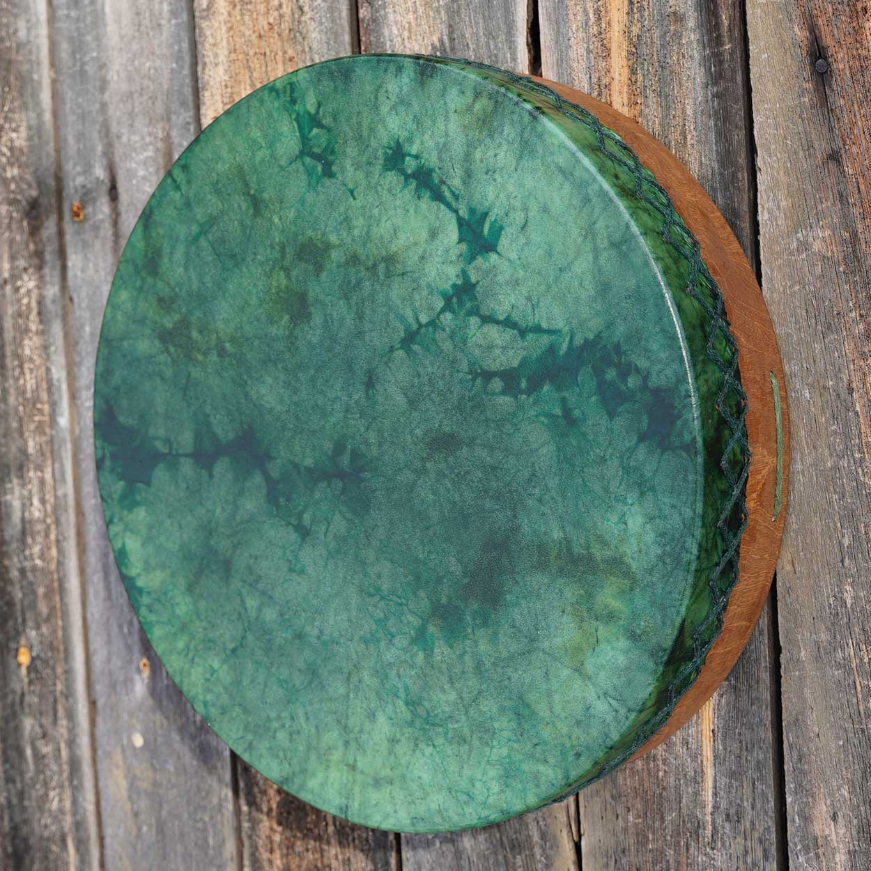 Näyttävä, keskikokoinen shamaanirumpu on valmistettu huolella käsityönä työpajasamme Lapissa. M-kokoinen rumpu sopii niin aloittelijan kuin kokeneemmankin rumpalin käteen. Rummun tumma ja kantava ääni tuntuu vatsanpohjassa asti, johdatellen kuulijat elävöittävään ja rentoutuneeseen tilaan.
