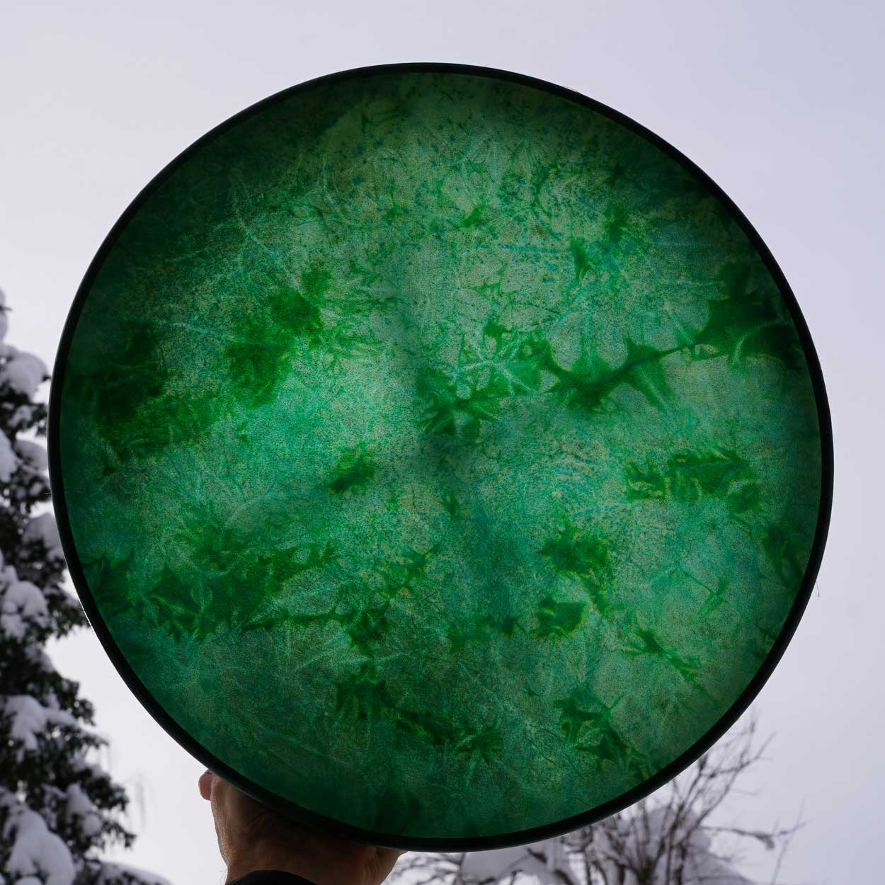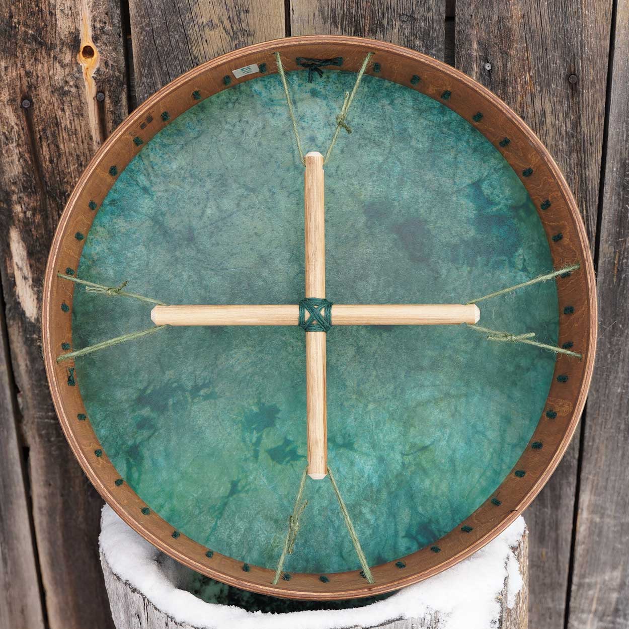 Luonto ja siitä huolenpitäminen on meille hyvin tärkeää, minkä vuoksi hankimme rummun materiaalit pääosin paikallisilta, vastuullisilta tuottajilta. Runko on taivutettu kaksinkertaisesta koivuvanerista, joka on vahattu puuvahalla. Shamaanirummun kalvo on kotimaista poronnahkaa, joka on natural tai värjätty upeisiin väreihin vesipetsillä. Rummun käsikahvana toimii puinen nyörein sidottu ristikko, josta saa hyvän soitto-otteen.
