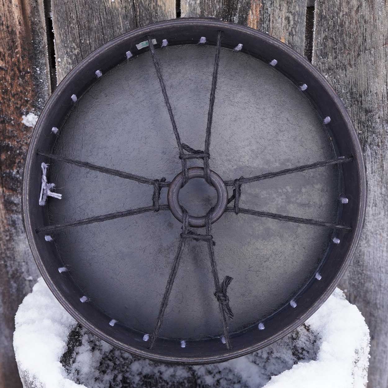 Luonto ja siitä huolenpitäminen on meille hyvin tärkeää, minkä vuoksi hankimme rummun materiaalit pääosin paikallisilta, vastuullisilta tuottajilta. Runko on taivutettu kaksinkertaisesta koivuvanerista, joka on vahattu puuvahalla. Shamaanirummun kalvo on kotimaista poronnahkaa, joka on natural tai värjätty upeisiin väreihin vesipetsillä. Pyöreä käsikahva on kiinnitetty rummun taakse nyörein.
