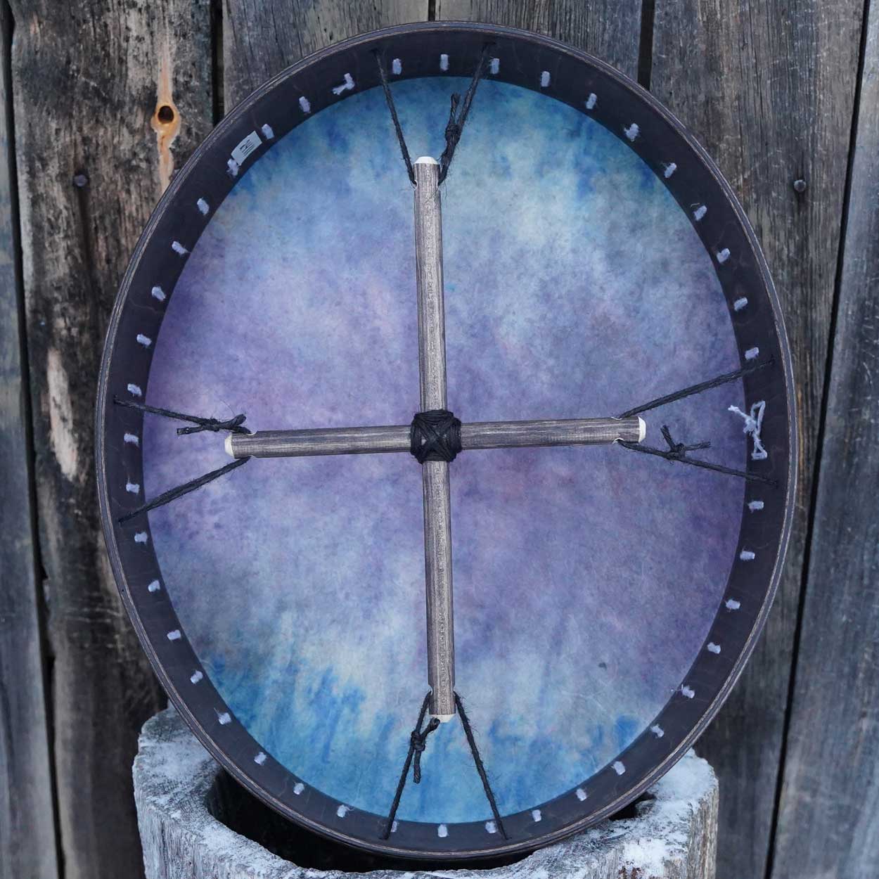 Näyttävä, keskikokoinen shamaanirumpu on valmistettu huolella käsityönä työpajasamme Lapissa. M-kokoinen rumpu sopii niin aloittelijan kuin kokeneemmankin rumpalin käteen. Rummun tumma ja kantava ääni tuntuu vatsanpohjassa asti, johdatellen kuulijat elävöittävään ja rentoutuneeseen tilaan.