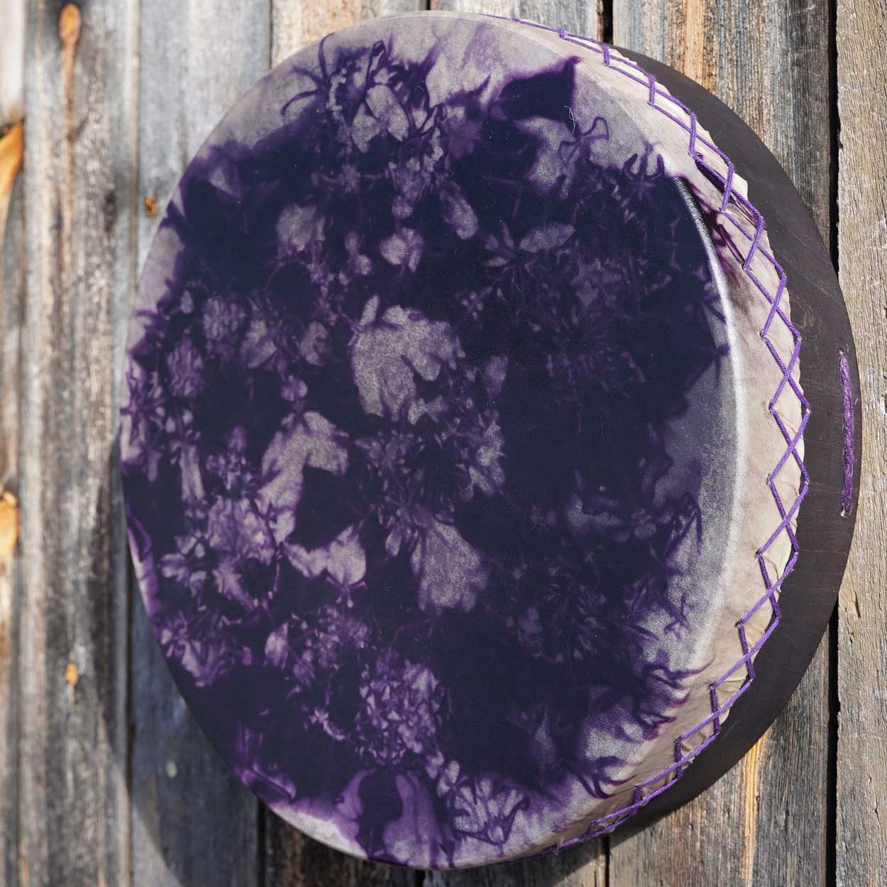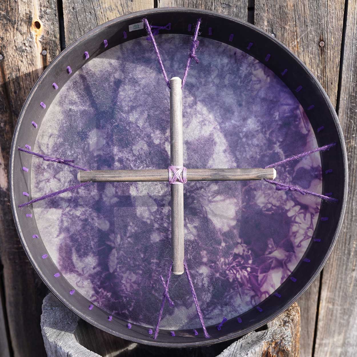 Luonto ja siitä huolenpitäminen on meille hyvin tärkeää, minkä vuoksi hankimme rummun materiaalit pääosin paikallisilta, vastuullisilta tuottajilta. Runko on taivutettu kaksinkertaisesta koivuvanerista, joka on vahattu puuvahalla. Shamaanirummun kalvo on kotimaista poronnahkaa, joka on natural tai värjätty upeisiin väreihin vesipetsillä. Rummun käsikahvana toimii puinen nyörein sidottu ristikko, josta saa hyvän soitto-otteen.