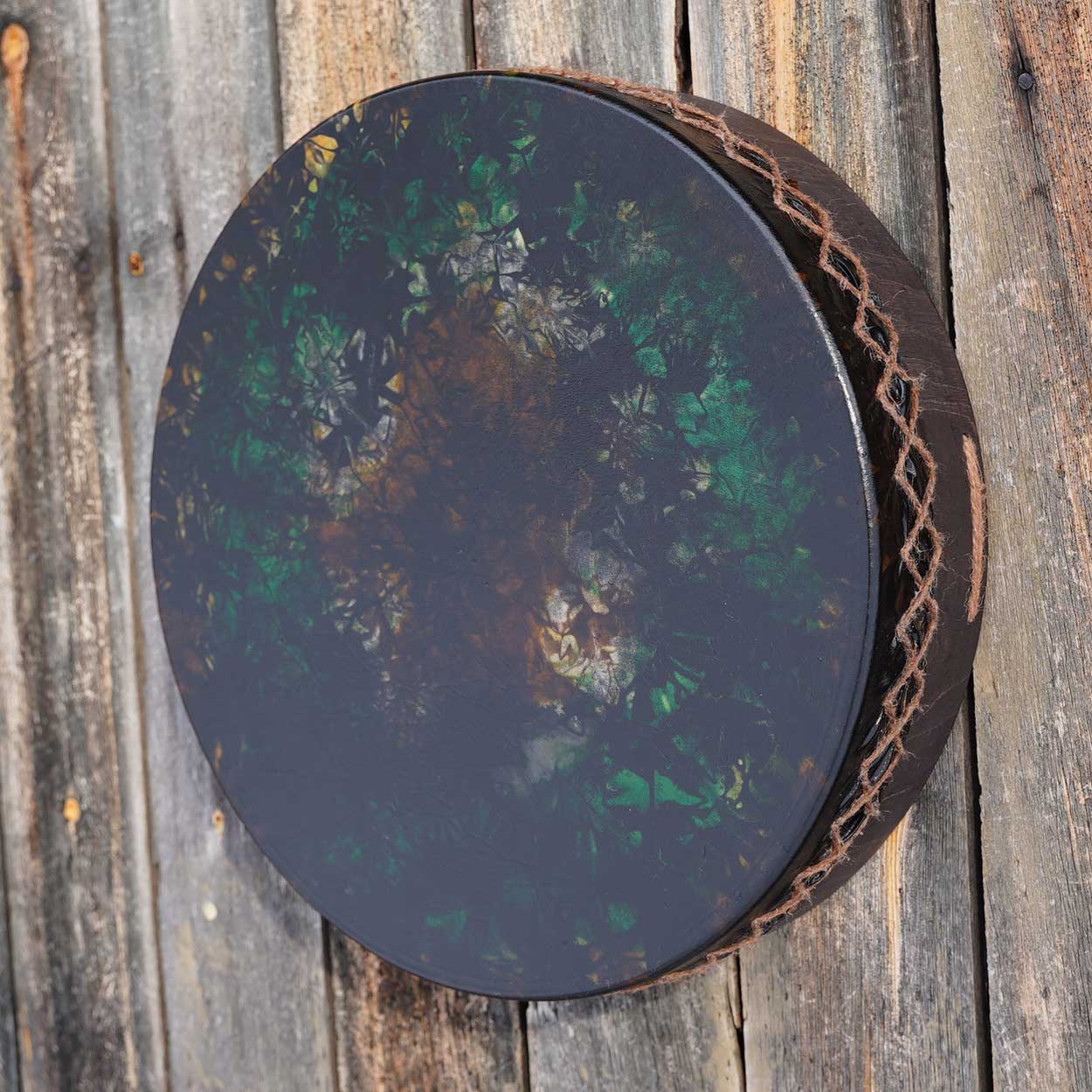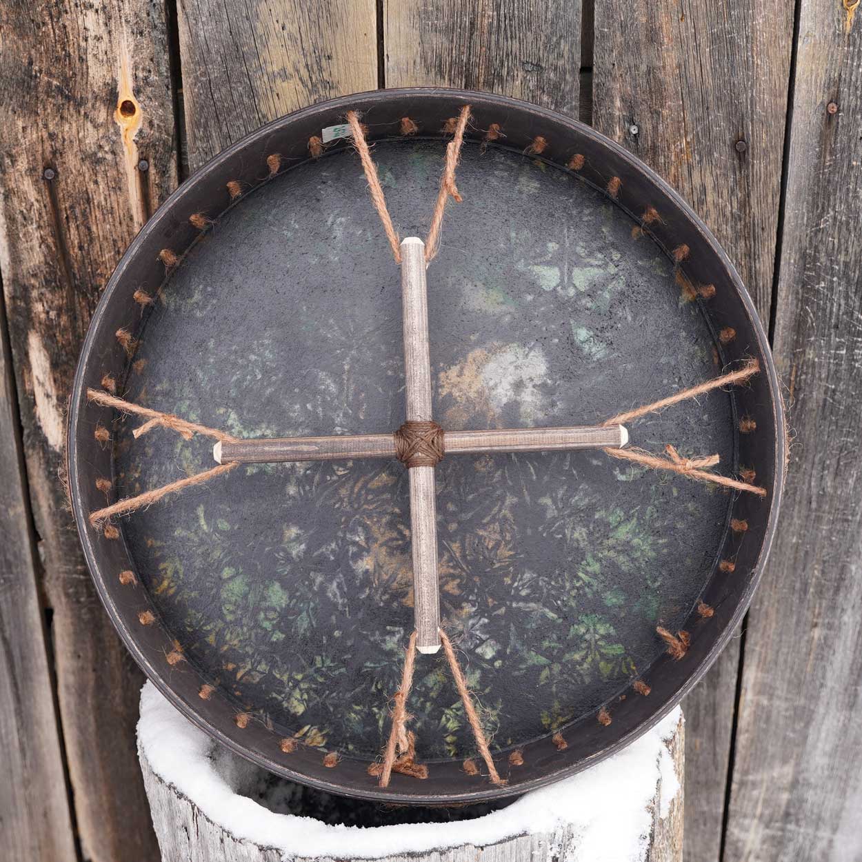 Näyttävä, keskikokoinen shamaanirumpu on valmistettu huolella käsityönä työpajasamme Lapissa. M-kokoinen rumpu sopii niin aloittelijan kuin kokeneemmankin rumpalin käteen. Rummun tumma ja kantava ääni tuntuu vatsanpohjassa asti, johdatellen kuulijat elävöittävään ja rentoutuneeseen tilaan.