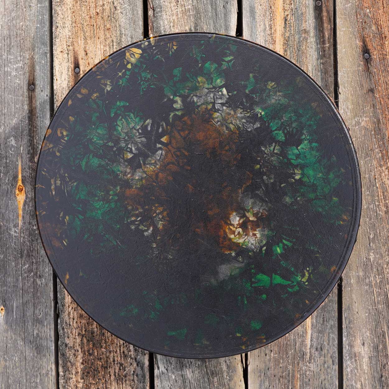 Sammalkuningas hallitsee hiljaista metsää, missä aika kulkee eri tahtia ja puut muistavat kaiken. Tämä rumpu soi maan lähellä ja kutsuu esiin vanhan metsän rauhaa ja viisautta.