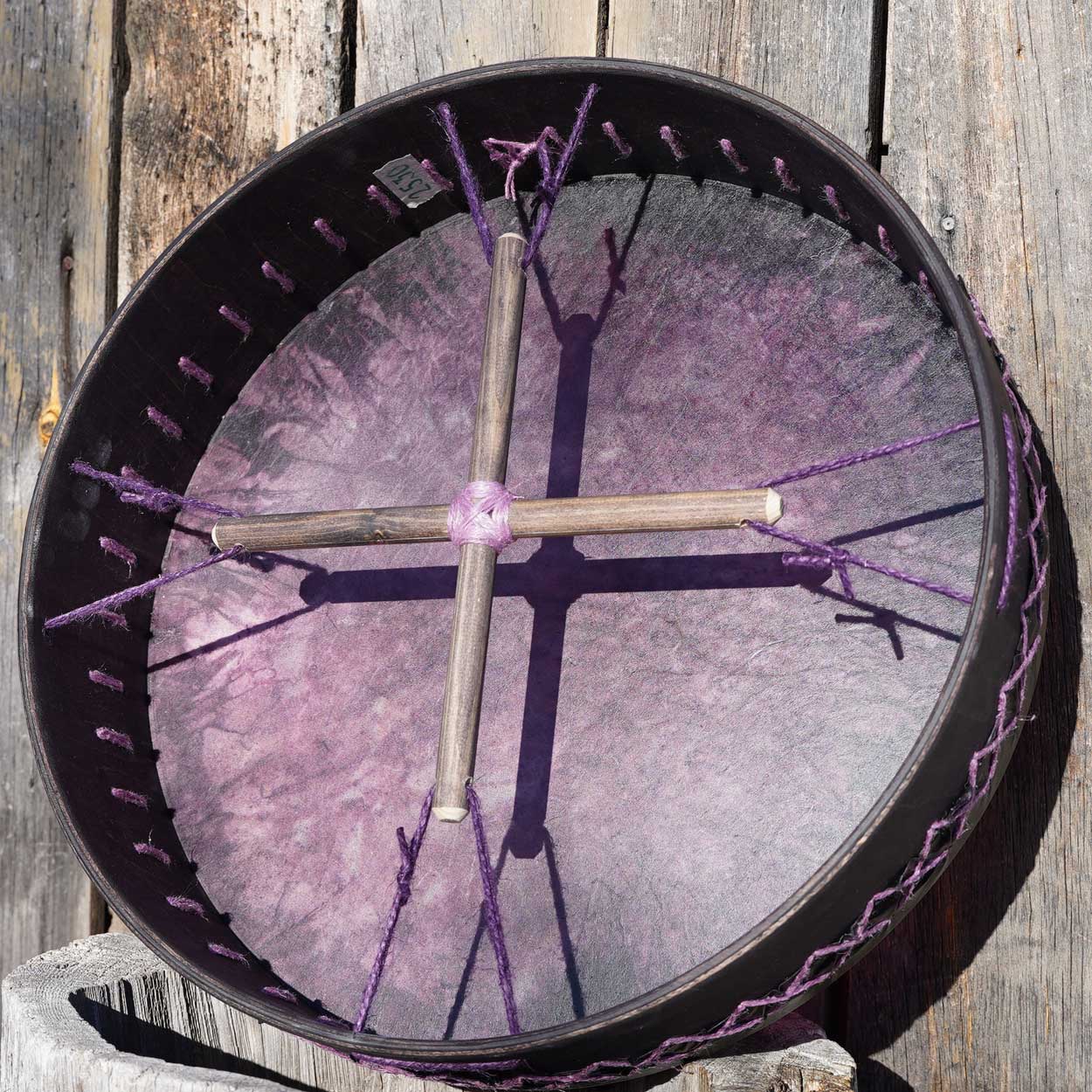 Luonto ja siitä huolenpitäminen on meille hyvin tärkeää, minkä vuoksi hankimme rummun materiaalit pääosin paikallisilta, vastuullisilta tuottajilta. Runko on taivutettu kaksinkertaisesta koivuvanerista, joka on vahattu puuvahalla. Shamaanirummun kalvo on kotimaista poronnahkaa, joka on natural tai värjätty upeisiin väreihin vesipetsillä. Rummun käsikahvana toimii puinen nyörein sidottu ristikko, josta saa hyvän soitto-otteen.