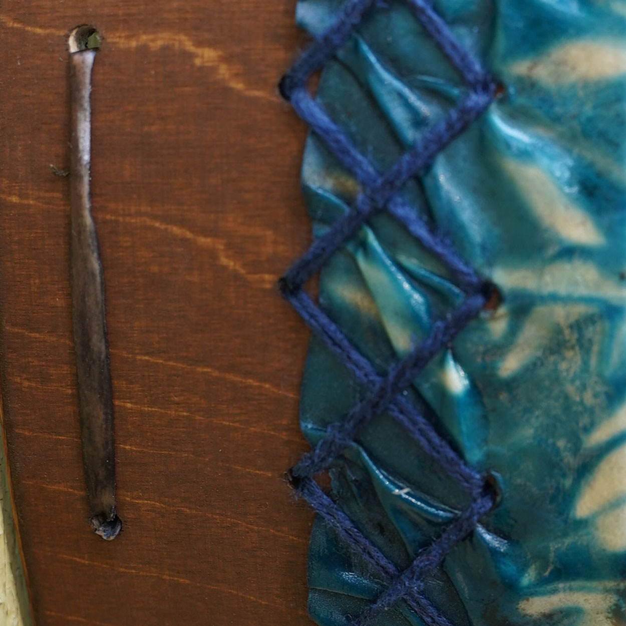 Rumpukehikko on koivuvaneria ja siihen voit kaivertaa tai maalata symboleita. Myös erilaiset talismaanit, höyhenet, helmet ja luonnon omat korut yms. sopivat hyvin koristeluun.