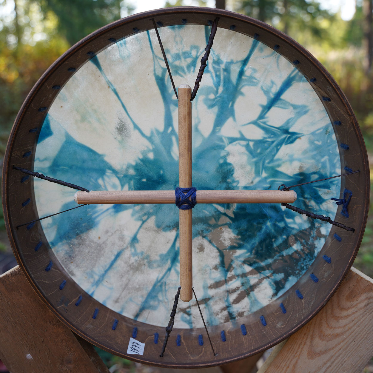 Näyttävä, keskikokoinen shamaanirumpu on valmistettu huolella käsityönä työpajasamme Lapissa. M-kokoinen rumpu sopii niin aloittelijan kuin kokeneemmankin rumpalin käteen. Rummun tumma ja kantava ääni tuntuu vatsanpohjassa asti, johdatellen kuulijat elävöittävään ja rentoutuneeseen tilaan.