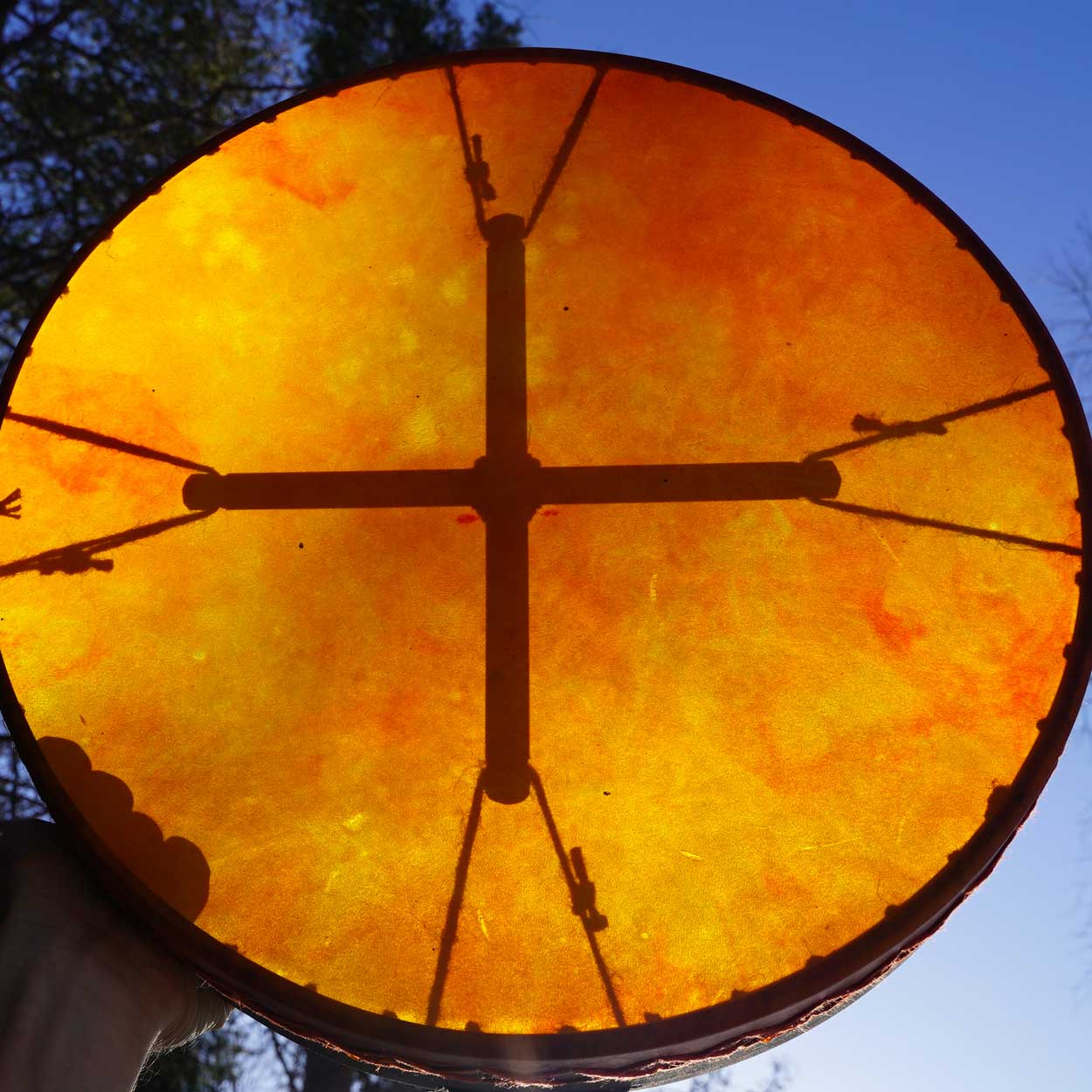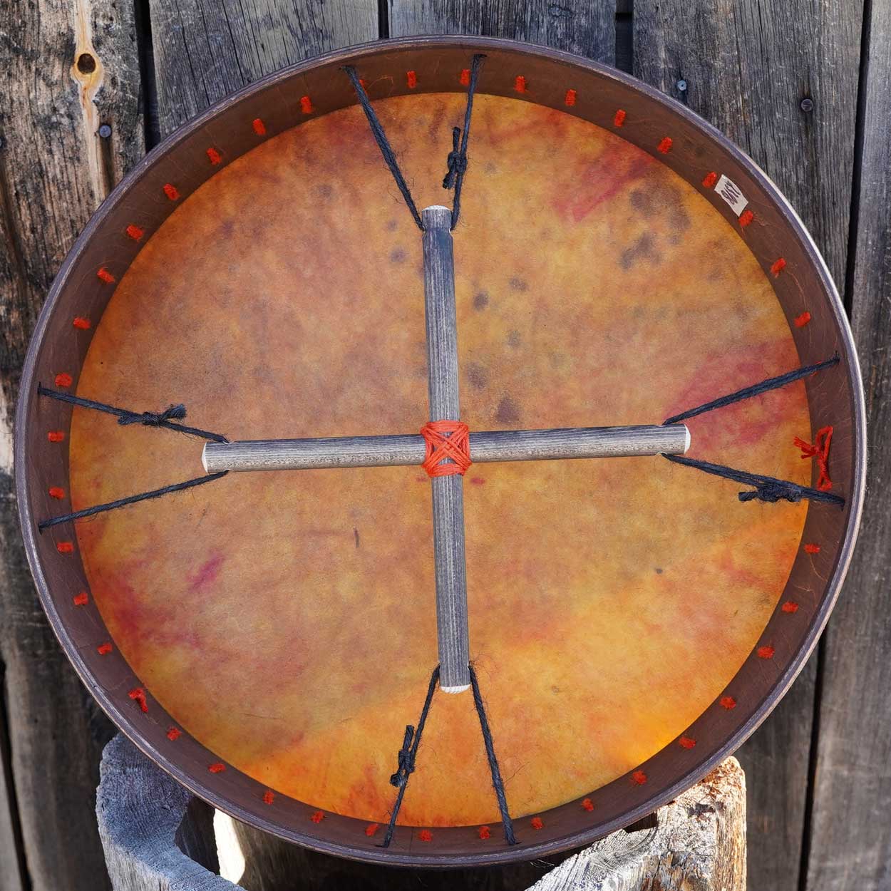 Näyttävä, keskikokoinen shamaanirumpu on valmistettu huolella käsityönä työpajasamme Lapissa. M-kokoinen rumpu sopii niin aloittelijan kuin kokeneemmankin rumpalin käteen. Rummun tumma ja kantava ääni tuntuu vatsanpohjassa asti, johdatellen kuulijat elävöittävään ja rentoutuneeseen tilaan.