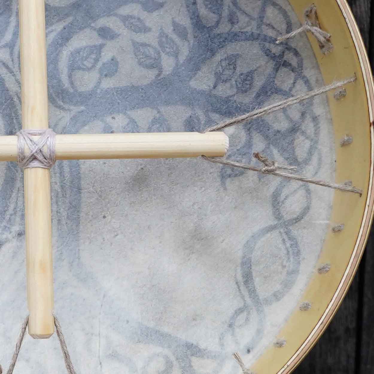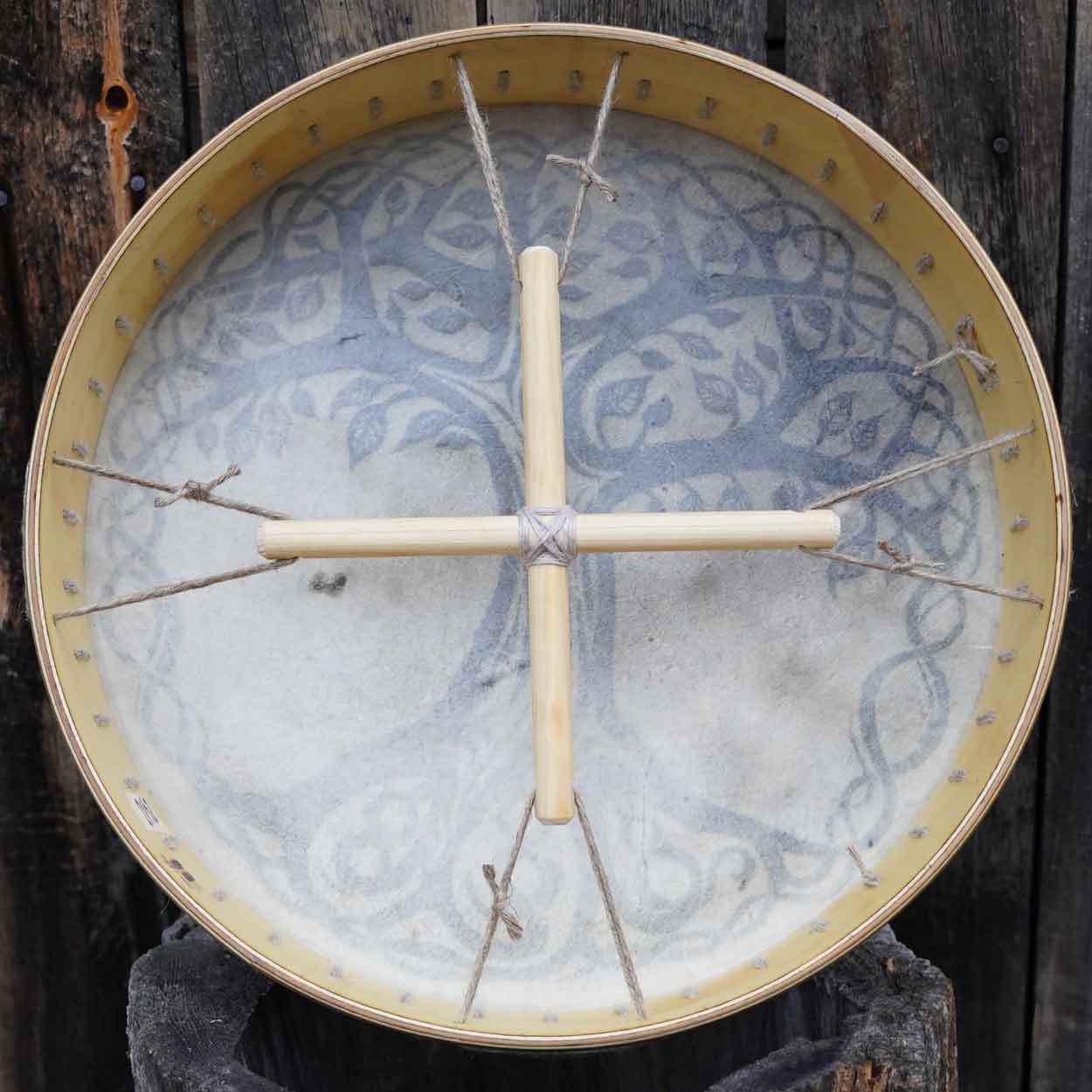 Seuraten ammoisten rummuntekijöiden jalanjälkiä, valmistamme viikinkirumpumme käsin ja lisäämme rumpujen pintaan viikingeille tärkeitä symboleita, kuten Yggdrasil.