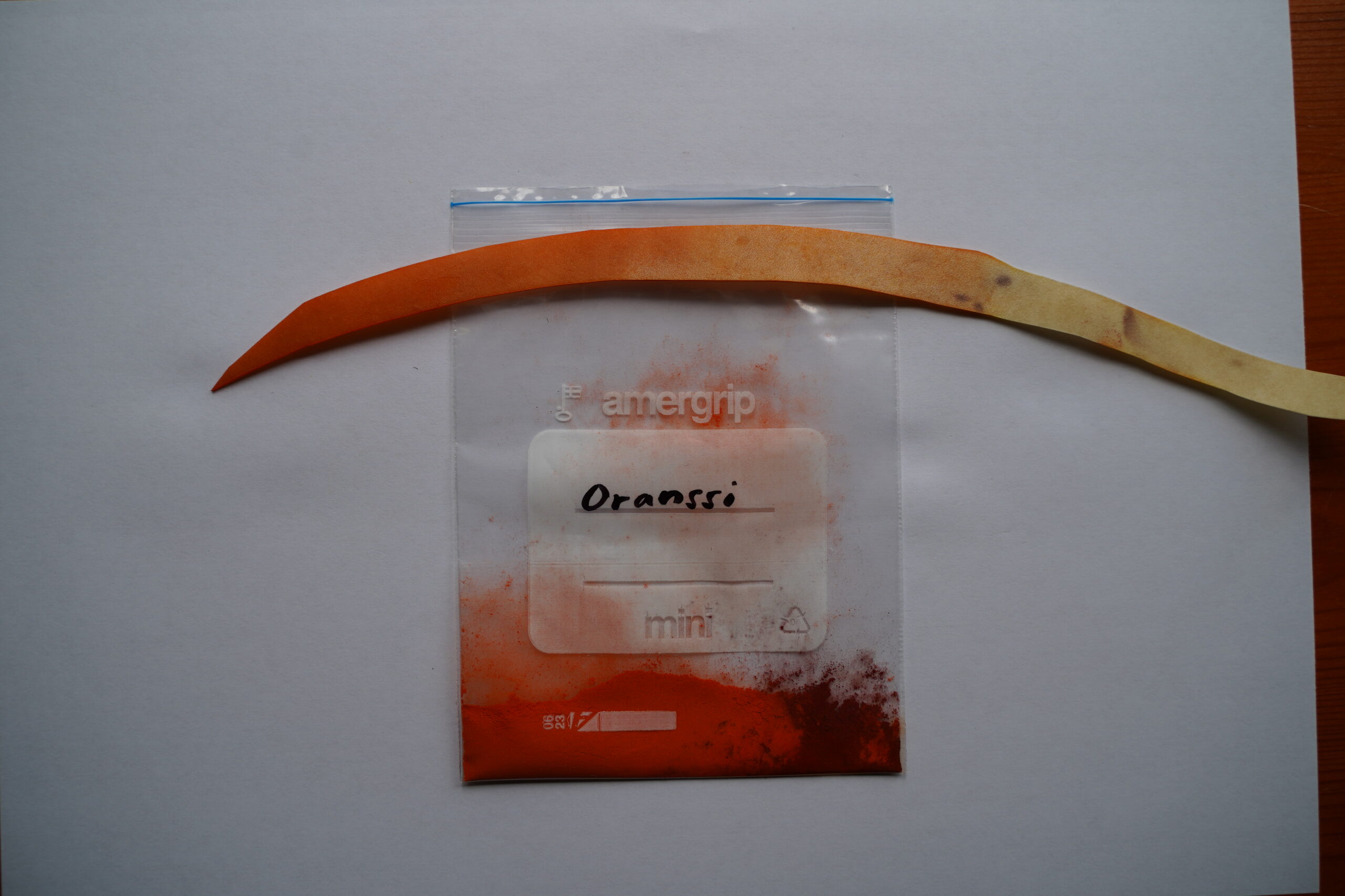 Pakattu minigrip pussiin, koko 2-3 gr. Riittää 1-2 rummun värjäykseen.
