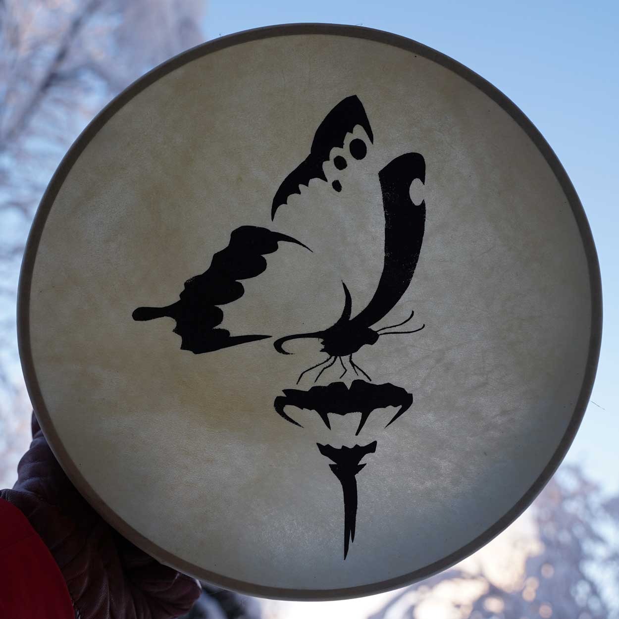 Luonto ja siitä huolenpitäminen on meille hyvin tärkeää, minkä vuoksi hankimme rummun materiaalit pääosin paikallisilta, vastuullisilta tuottajilta. Runko on taivutettu kaksinkertaisesta koivuvanerista, joka on vahattu puuvahalla. Shamaanirummun kalvo on kotimaista poronnahkaa, joka on natural tai värjätty upeisiin väreihin vesipetsillä. Pyöreä käsikahva on kiinnitetty rummun taakse nyörein. Rummun mukana seuraavat printatut hoito-ohjeet. Vihkimisohjeet voit ladata tästä.
